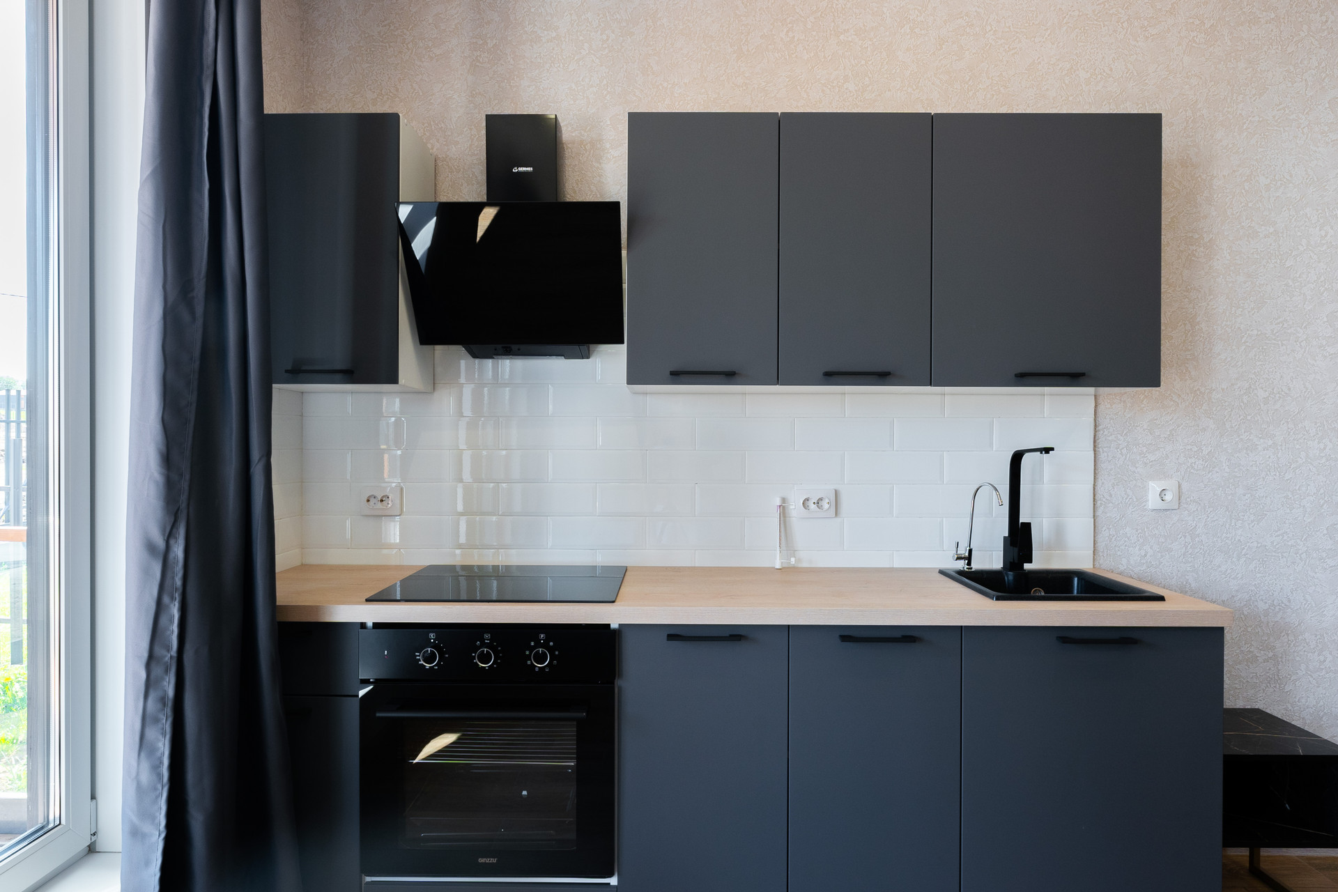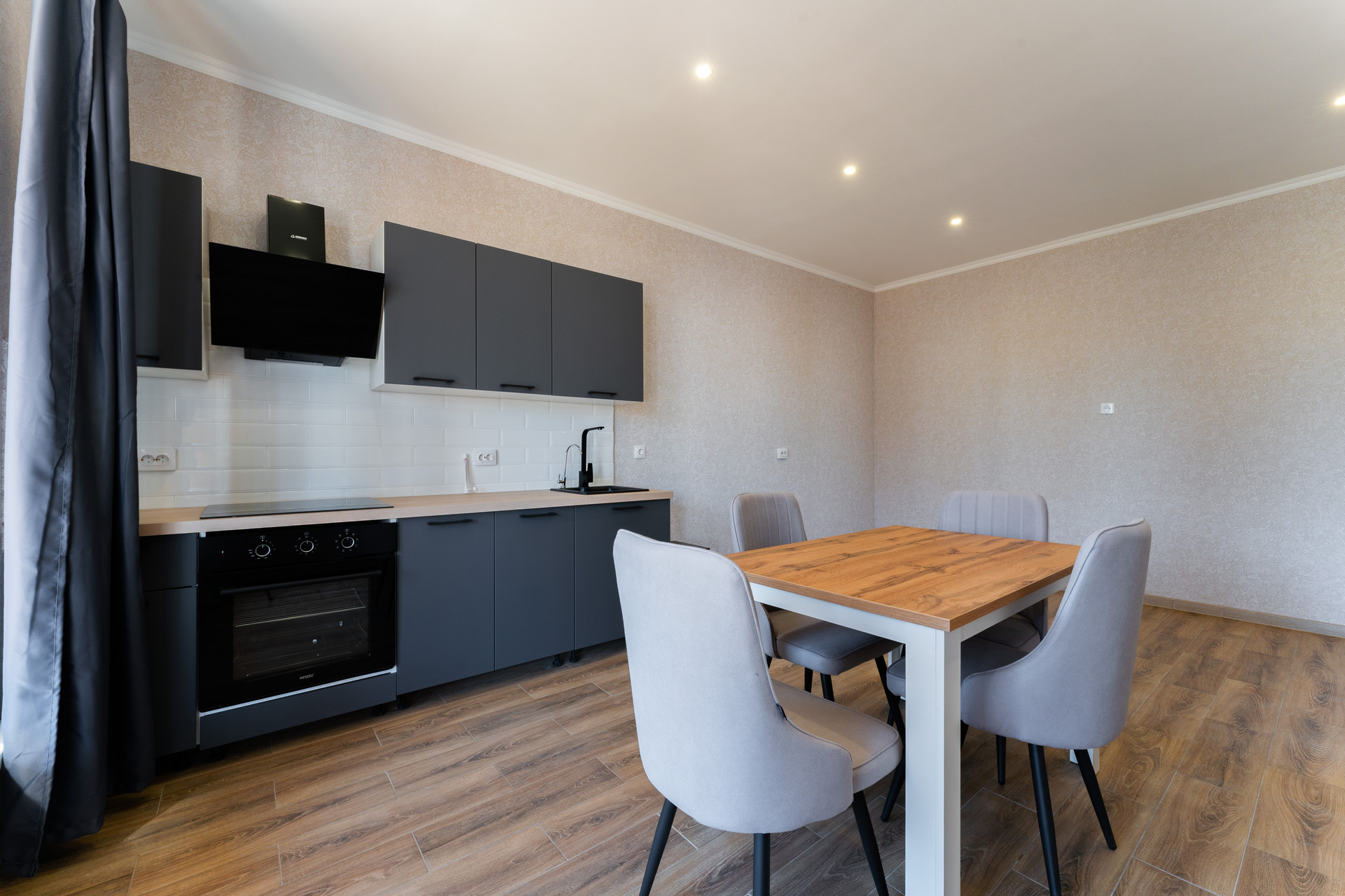 • полностью оборудованная кухня со встроенной варочной панелью и встроенным духовым шкафом