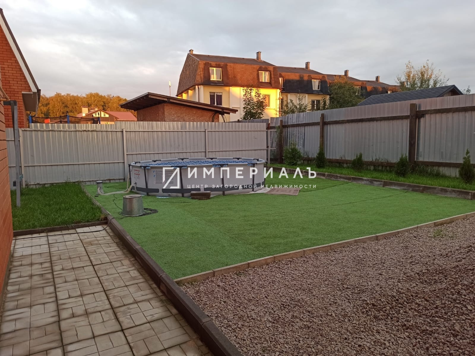 На участке-ландшафтный дизайн, мангальная зона, бассейн с искусственным газоном, качели, беседка, хозблок.
