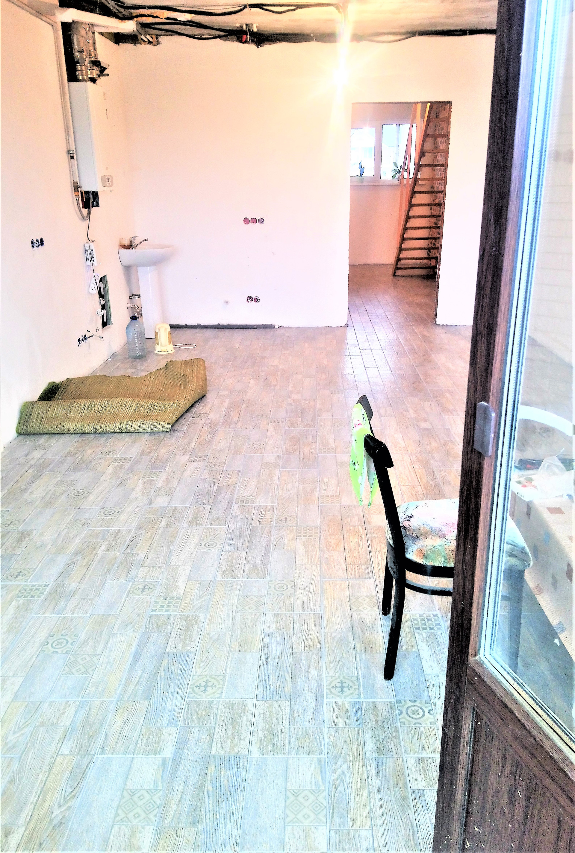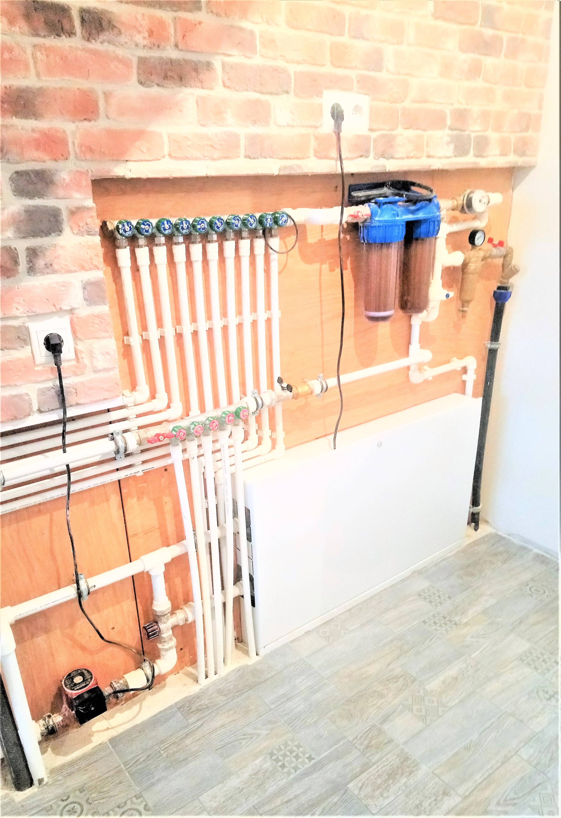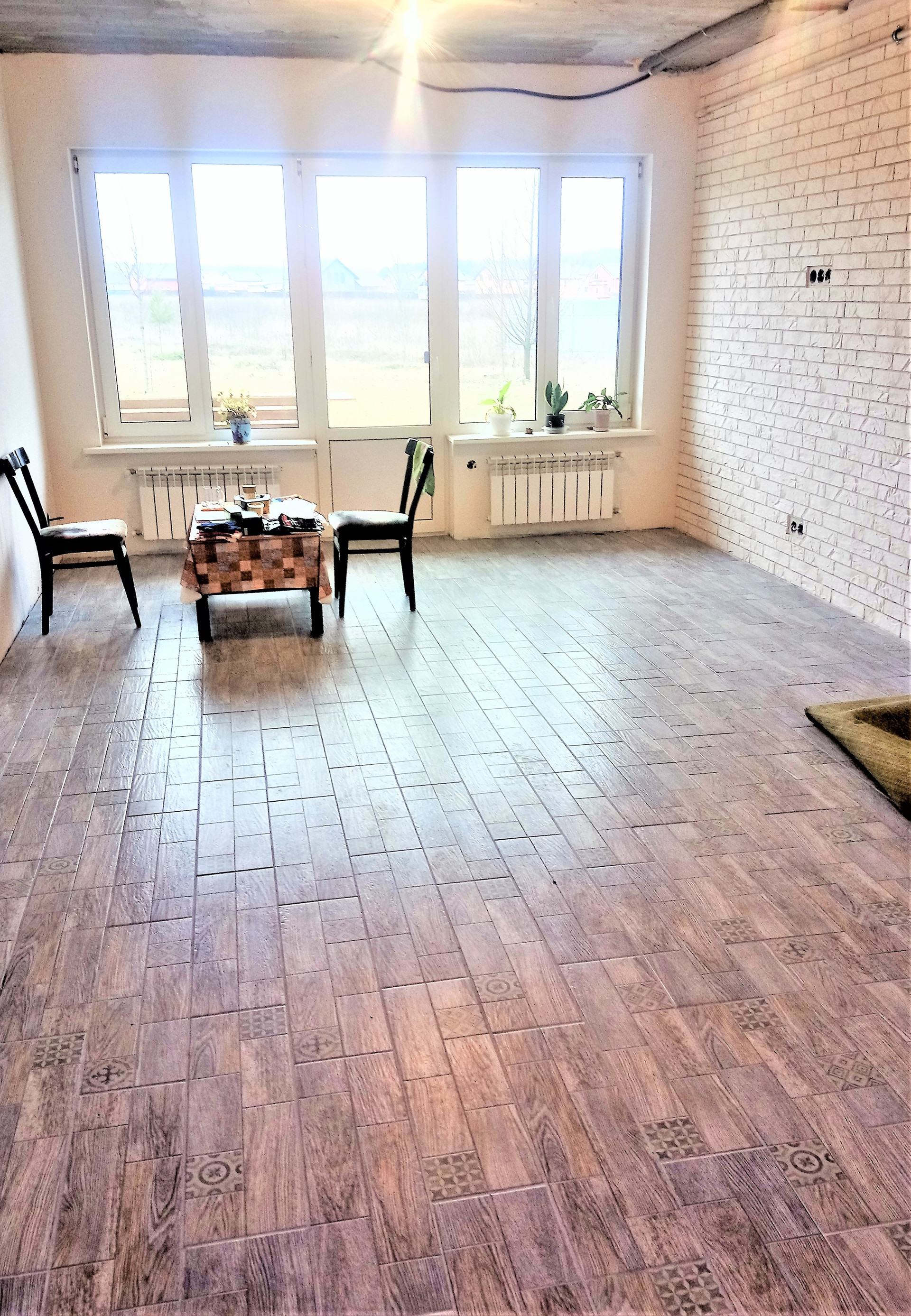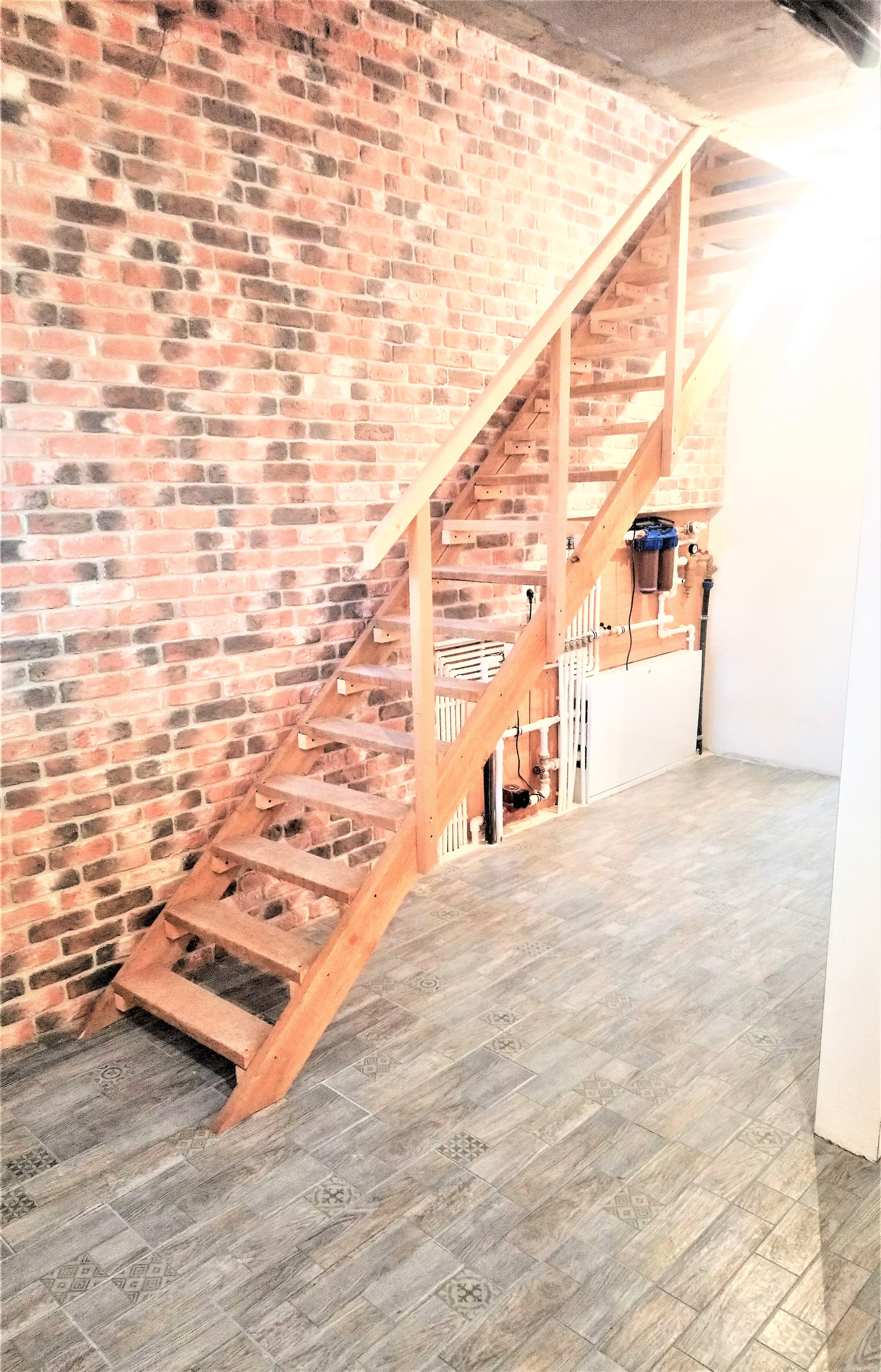 По всему первому этажу тёплый пол, плитка, плюс радиаторы в кухне гостинной.