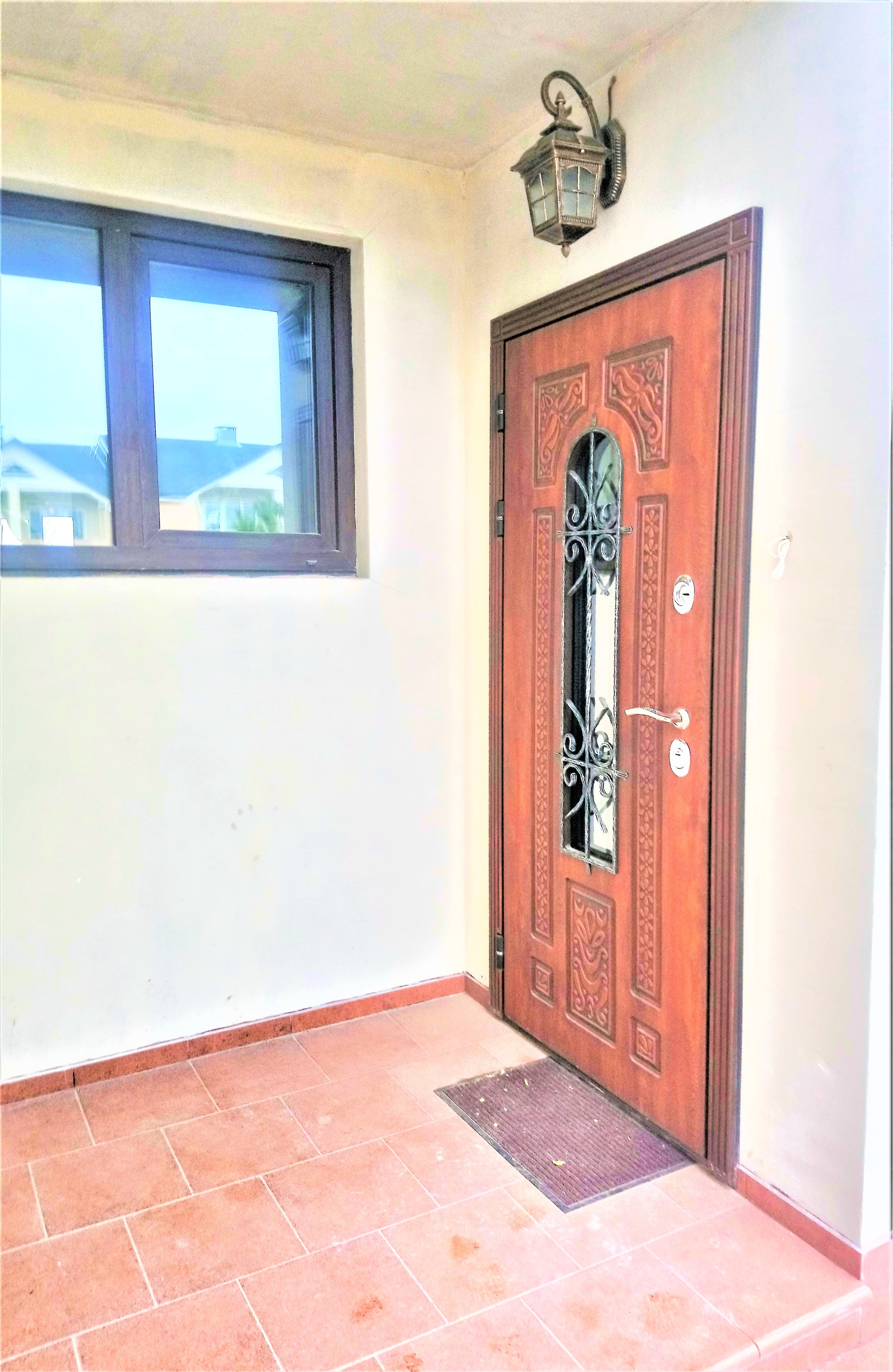 Оформлен как квартира, участок 1 сотка общая домовая территория и фасадная часть с парковочным местом,  ухожена, дорожка из плитки, зелёный газон.