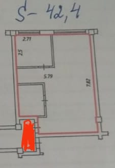 Общая площадь 42.4 м2