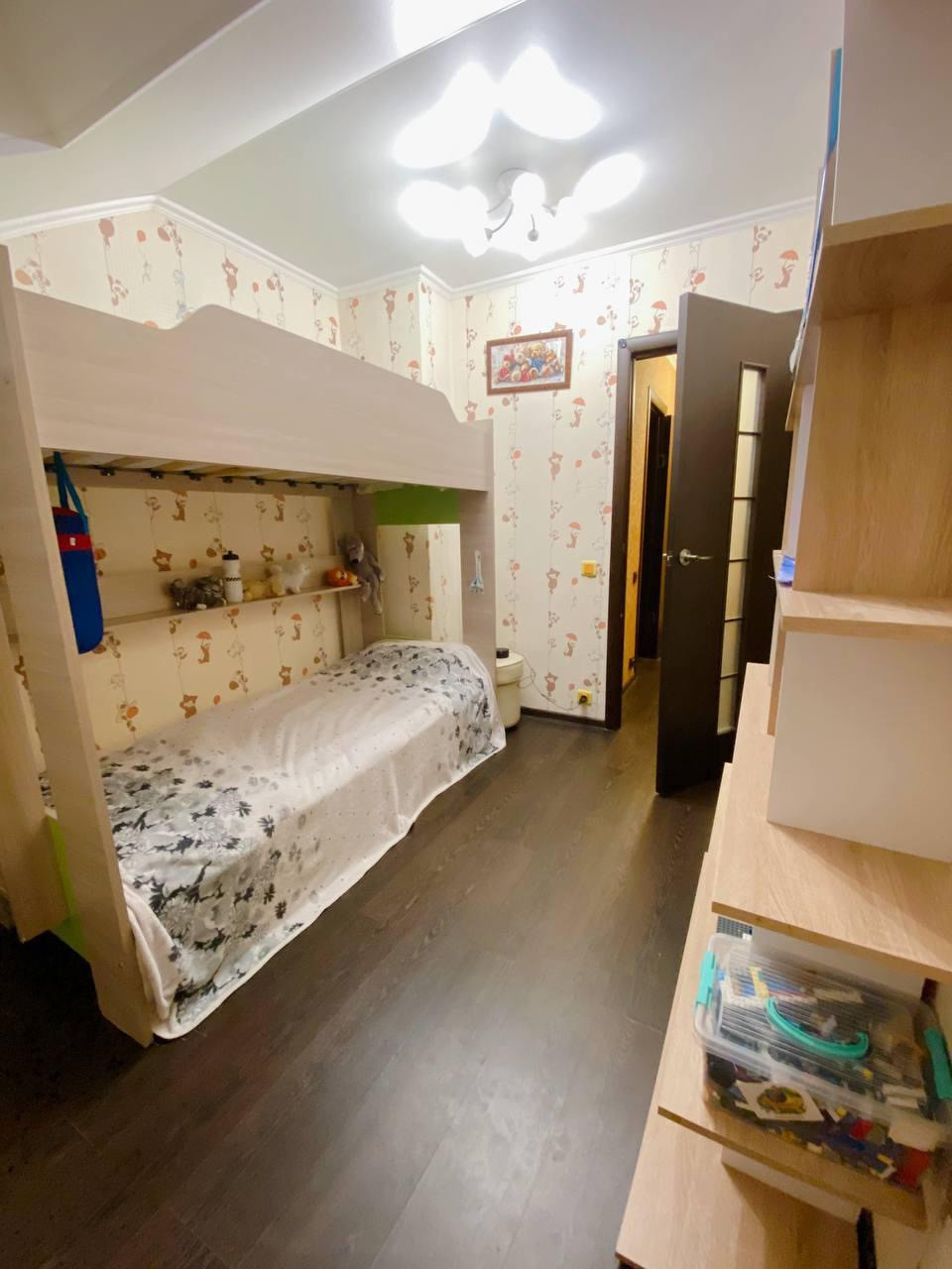 Во дворе есть детская площадка. Рядом находится продуктовый магазин. В нескольких минутах ходьбы детский сад, фитнес центр, остановка общественного транспорта.. Квартира находится в спальном районе.