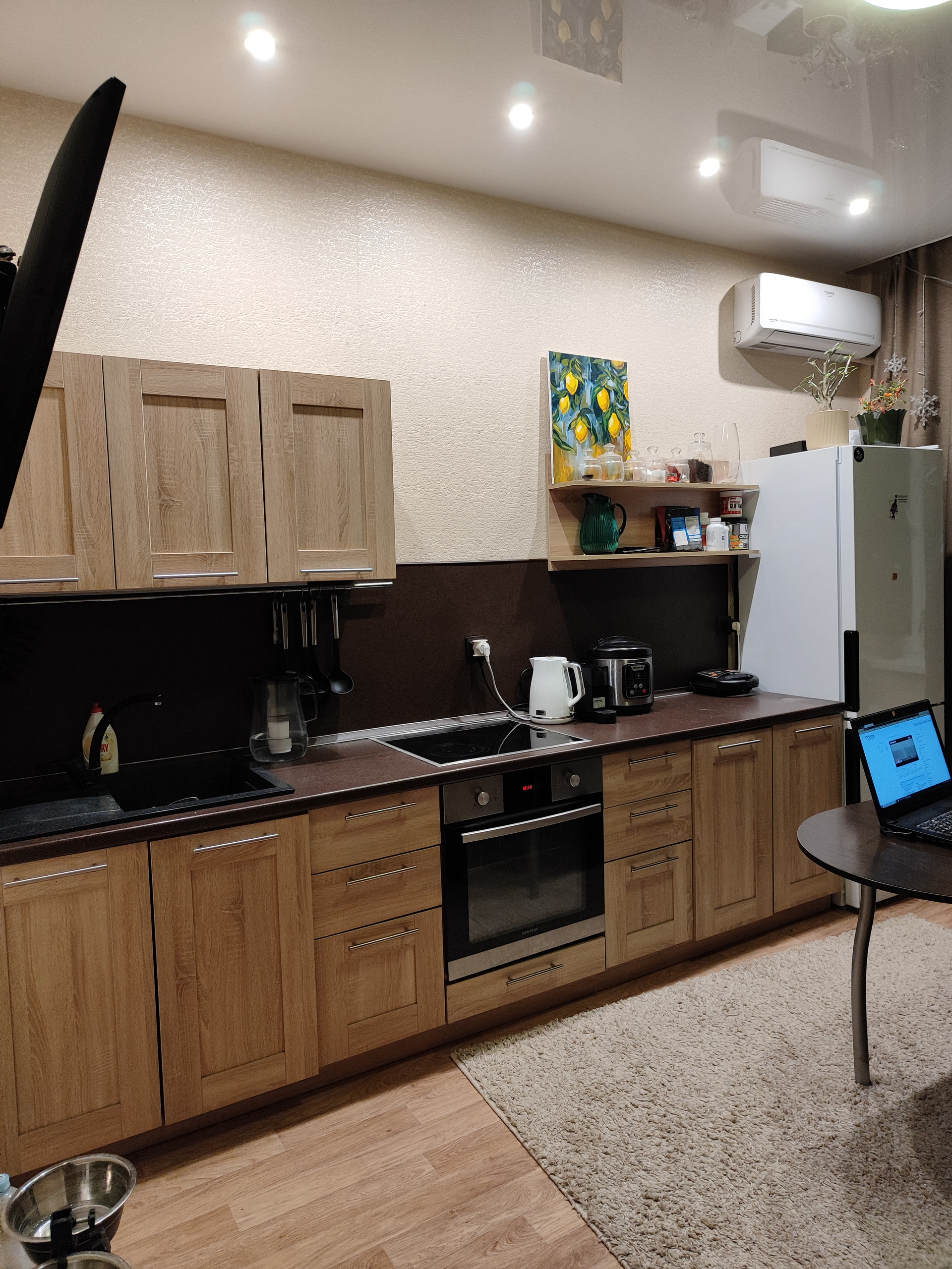 В квартире ремонт выполнен для себя, балкон застеклен, установлены счетчики на воду, скрытые карнизы, натяжной потолок, по всей квартире сделано экономичное освещение и подсветка светодиодами.