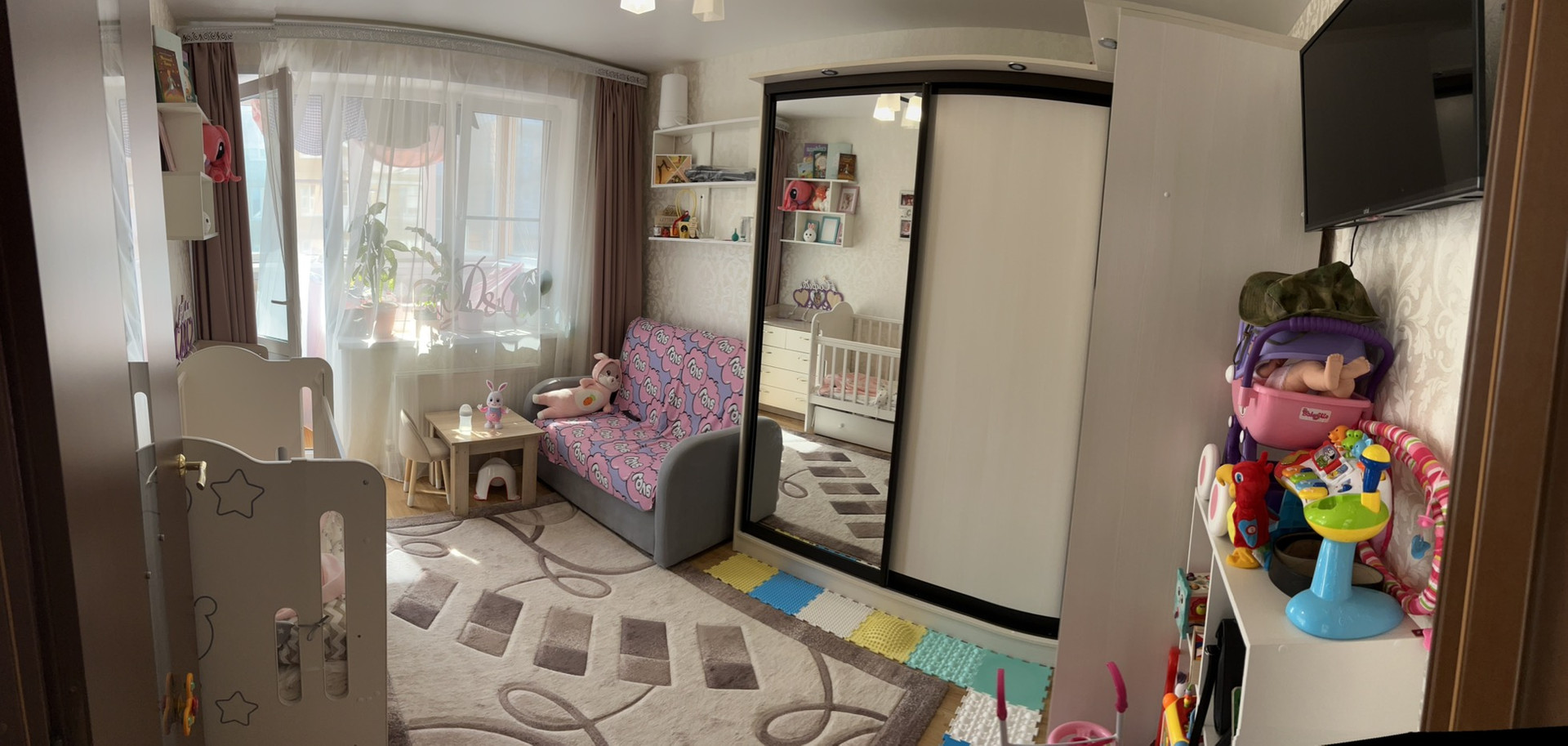 Приятный бонус при покупки однокомнатной квартиры-возможность разделения двух зон:Гостевая и спальная комната.