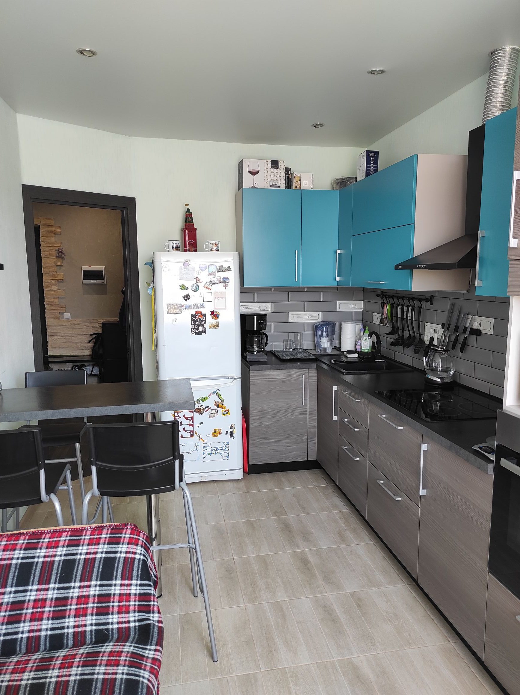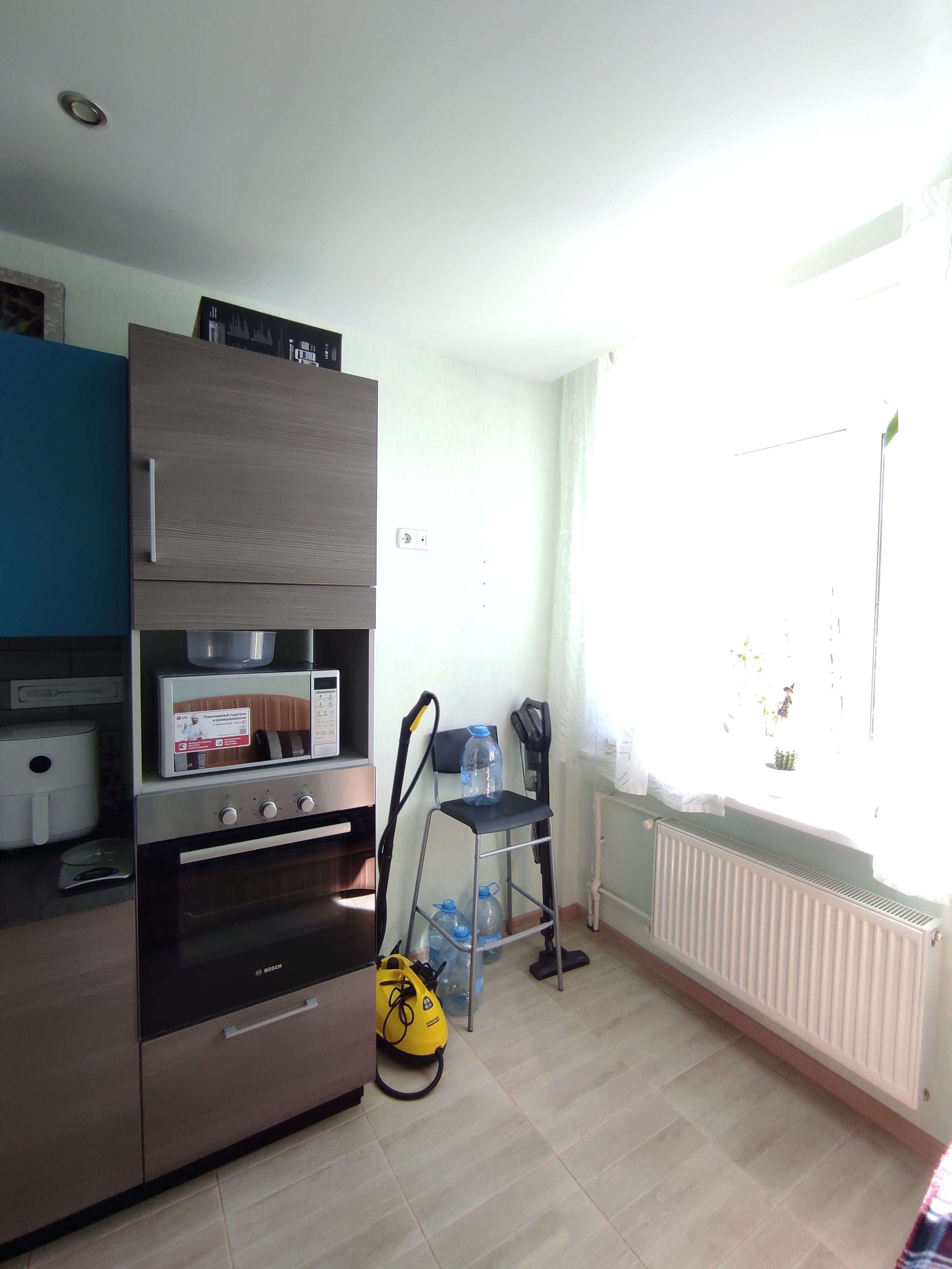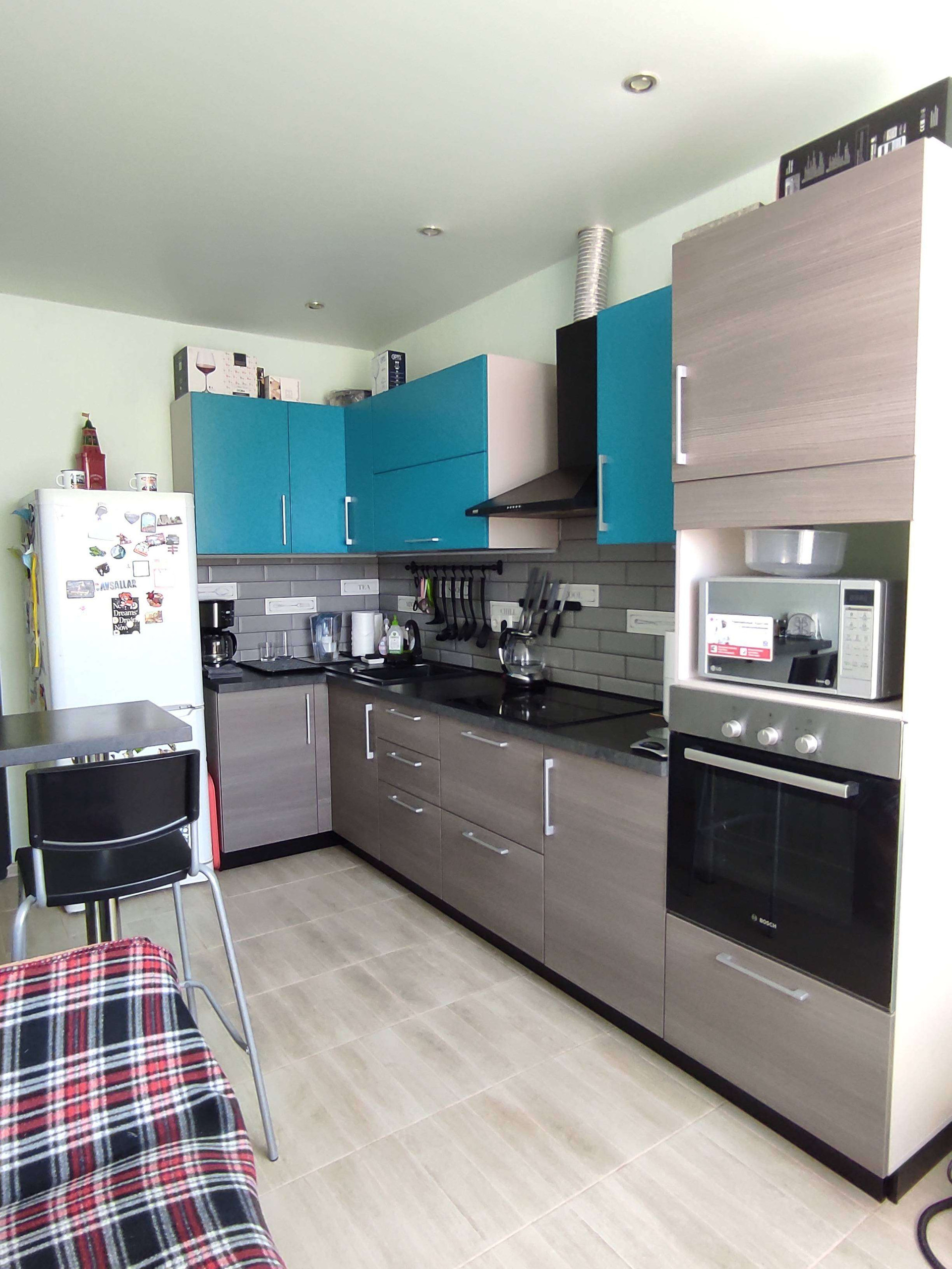 При продаже остаётся встроенная кухня с техникой, диван в комнате.