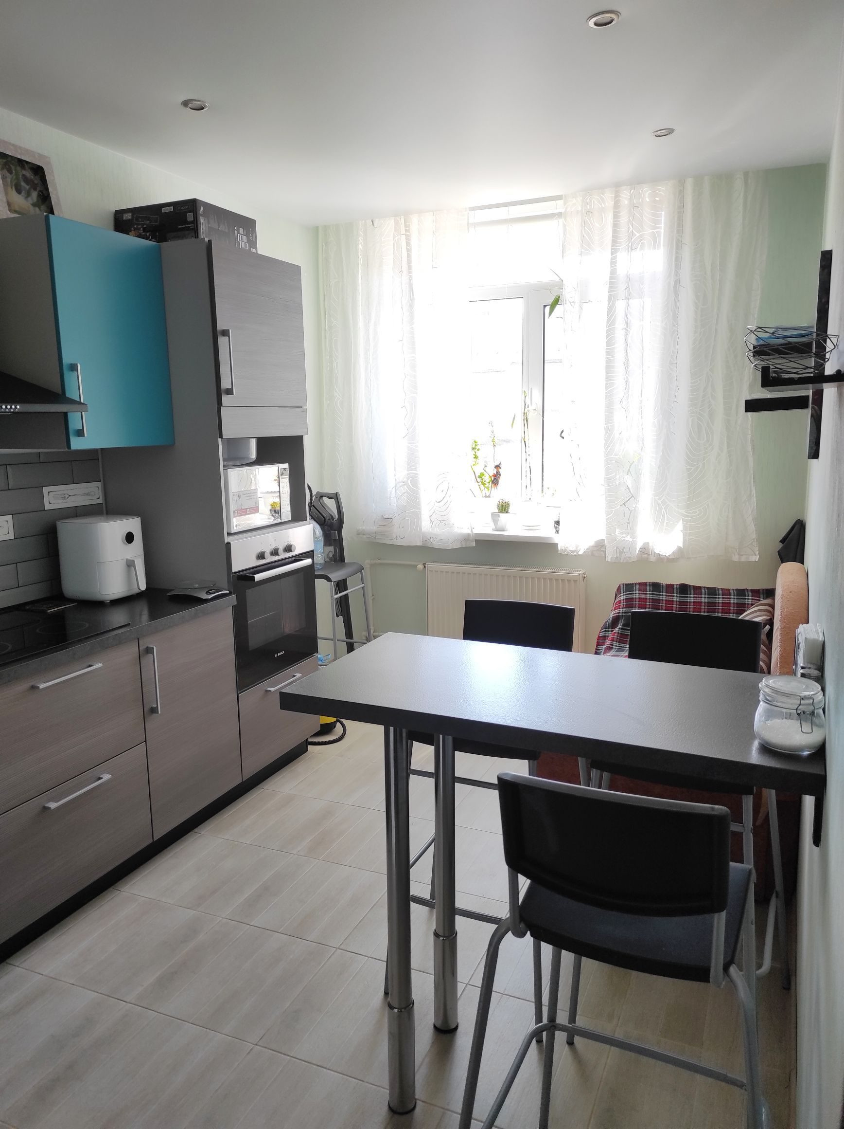 Квартира в отличном состоянии, качественный ремонт, полы плитка, ламинат, натяжные потолки.