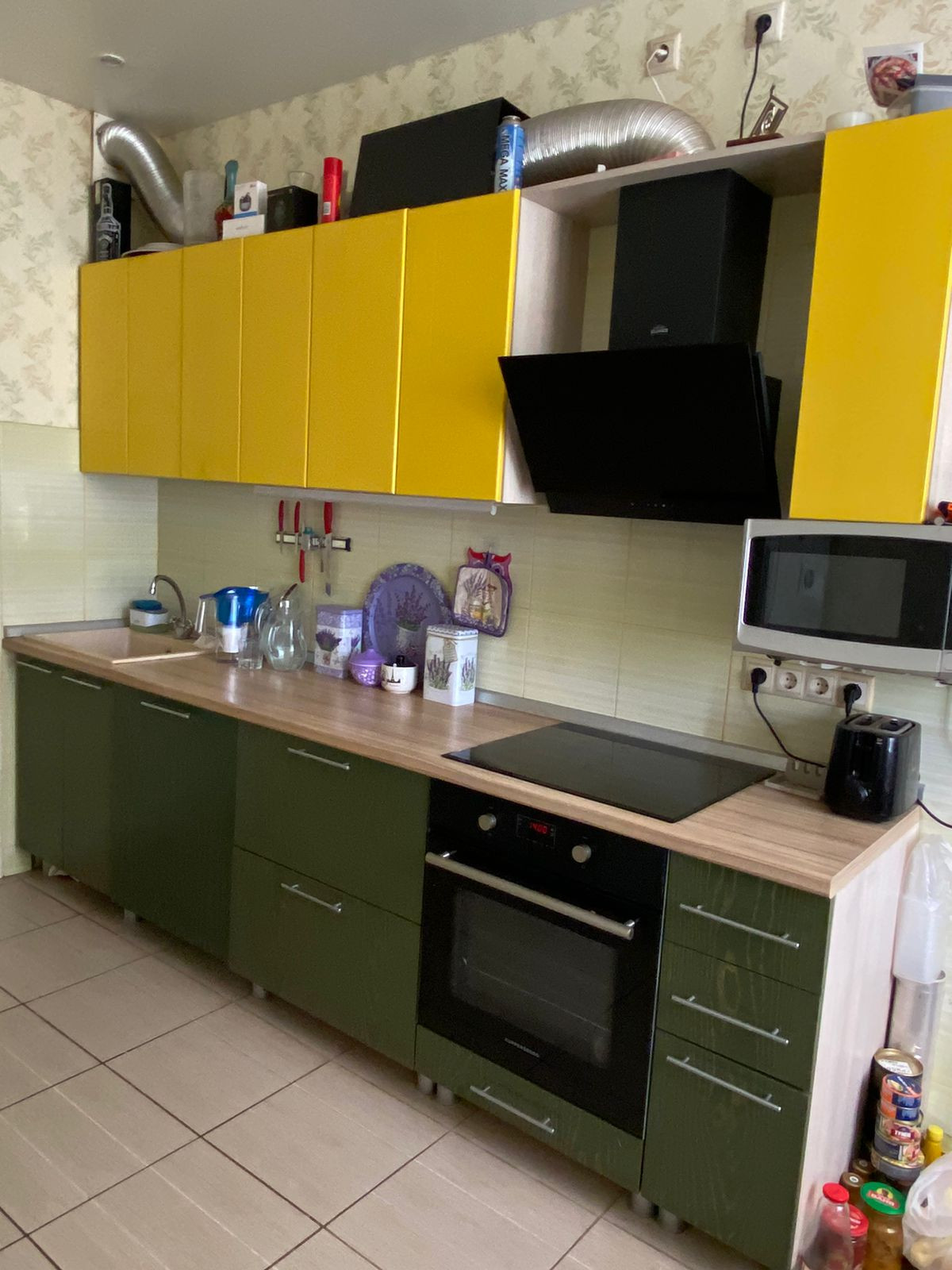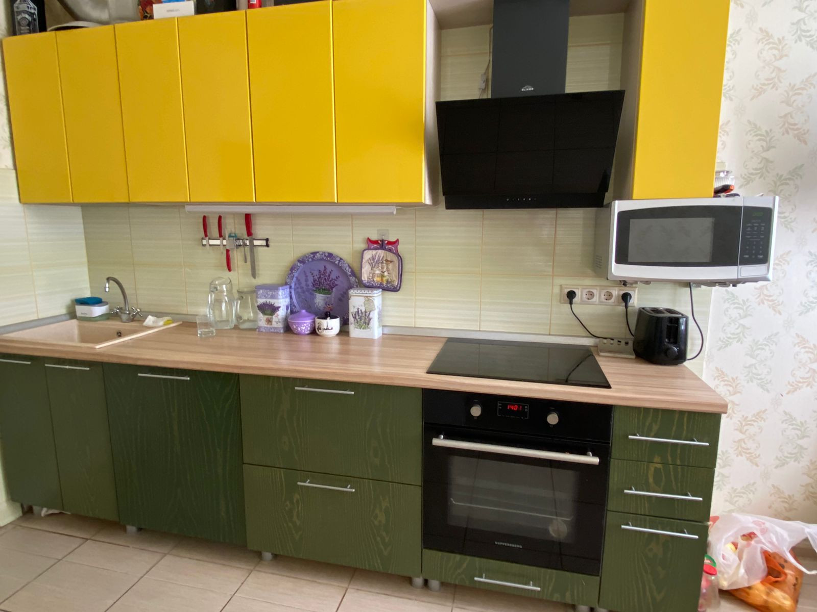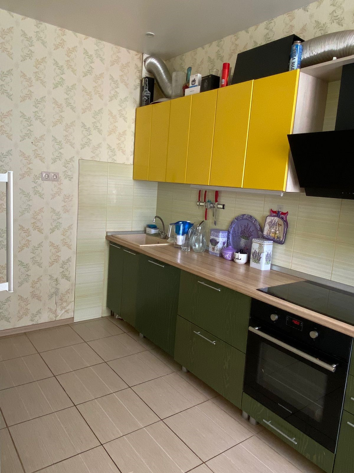 В цену квартиры входит дорогой встроенный кухонный гарнитур с натуральными фасадами, техника (индукционная варочная панель, вытяжка, посудомойка 60 см Bosch).