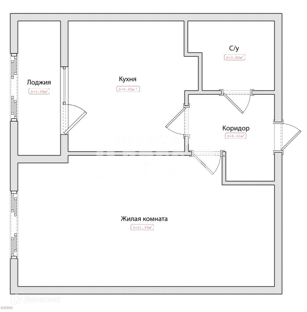 Общая площадь - 40.74 кв.м (балкон 3.08 кв.м), комнаты изолированные - 21.39 кв.м, кухня - 9.4 кв.м, санузел совмещенный.