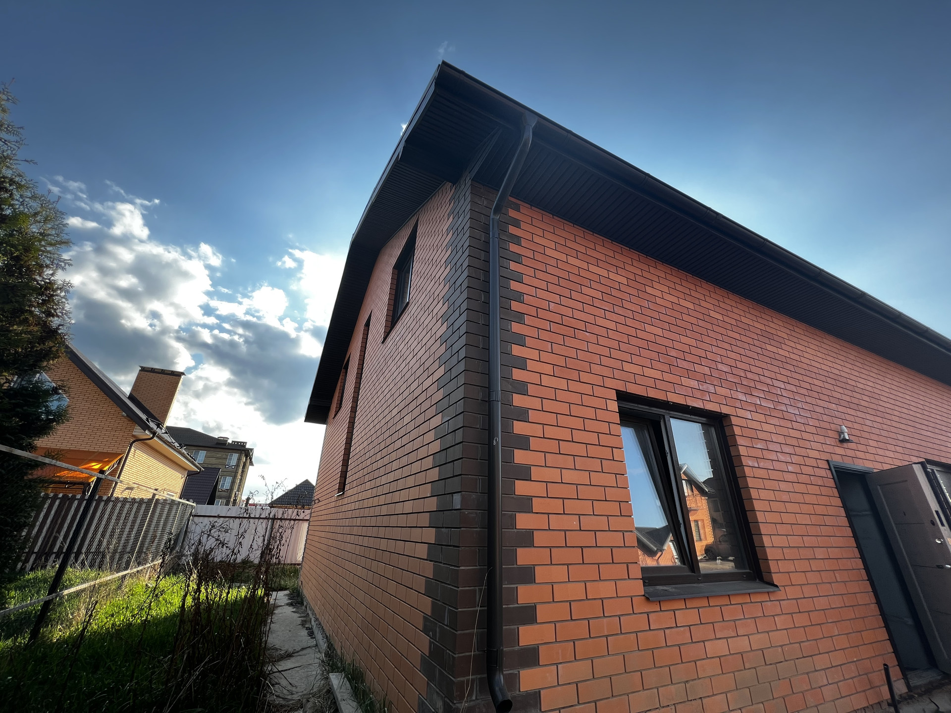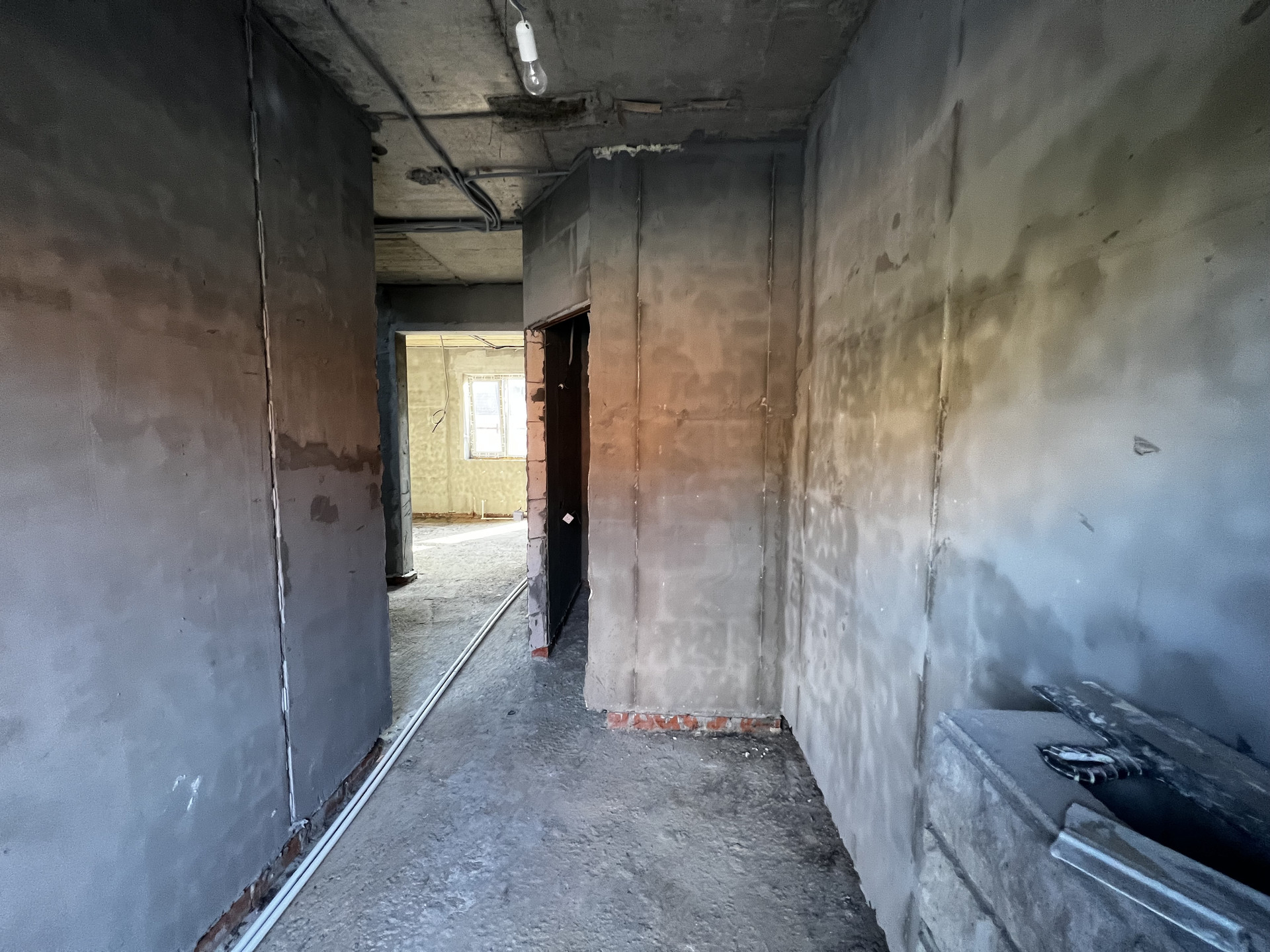 В таунхаусе выполнена черновая отделка, разведена электрика и сантехника.