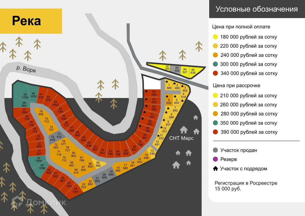 Продажа напрямую от собственника!Новый коттеджный поселок «Река» на правом берегу реки Вори (приток Клязьмы) и находится рядом с посёлками Литвиново и Клюквенный, граничит с деревней Каблуково и относится к сельскому поселению Огудневское.СТАРТ ПРОДАЖ!Площадь земельных участков от 4 до 17 соток. Возможно приобретение участка с подрядом на строительство дома.Электричество – есть (производится напрямую ПАО «Россети»)Прописка – естьВзносов и платежей - нетДом зарегистрировать – можноИпотека под строительство – разрешена.Рядом с посёлком находится Церковь Спаса Нерукотворного и часовня Блаженной Матроны Московской.В ближайшем посёлке Литвиново имеется вся возможная инфраструктура: детский сад, школа, спортивные комплексы, почтовое отделение, магазины, торговые центры и строительный рынок.Жителей и гостей будет встречать современная въездная группа с КПП, стелой и флагами посёлка, гостевой парковкой. Для безопасного проживания, въезд в посёлок будет осуществляться через шлагбаум, а сам посёлок по всему периметру будет огорожен забором, выполненным в единой стилистике. Весной 2024 года будут построены внутрипоселковые дороги из асфальтной крошки.Общественная зона отдыха будет оборудована площадкой для стритбола, детским песочным двориком с горкой, детским спортивным комплексом, воркаутом и удобными скамейками для отдыха.Рядом с посёлком находится пляжная зона, на которой можно отдыхать, купаться и загорать.Каждый участок имеет разрешение на строительство жилого дома с последующей пропиской в нем.Посёлок «Река» имеет отличную транспортную доступность: можно добраться на автомобиле по Щелковскому, Ярославскому или Фряновскому шоссе, на автобусах 29, 35 и 37 от железнодорожной станции «Щёлково», до которой курсируют пригородные поезда с Ярославского вокзала.Посёлок «Река» — прекрасный выбор как для летнего отдыха, так и для круглогодичного проживания в экологически чистом и живописном районе Подмосковья.ПОСЕЛОК НА СТАРТЕ ПРОДАЖ! ПОТОМ ЦЕНА БУДЕТ ВЫШЕ!УСПЕЙТЕ ВЫБРАТЬ САМЫЙ ЛУЧШИЙ УЧАСТОК ДЛЯ СЕБЯ!Возможна рассрочка. Одобрение ипотеки на льготных условиях со ставкой от 6%.