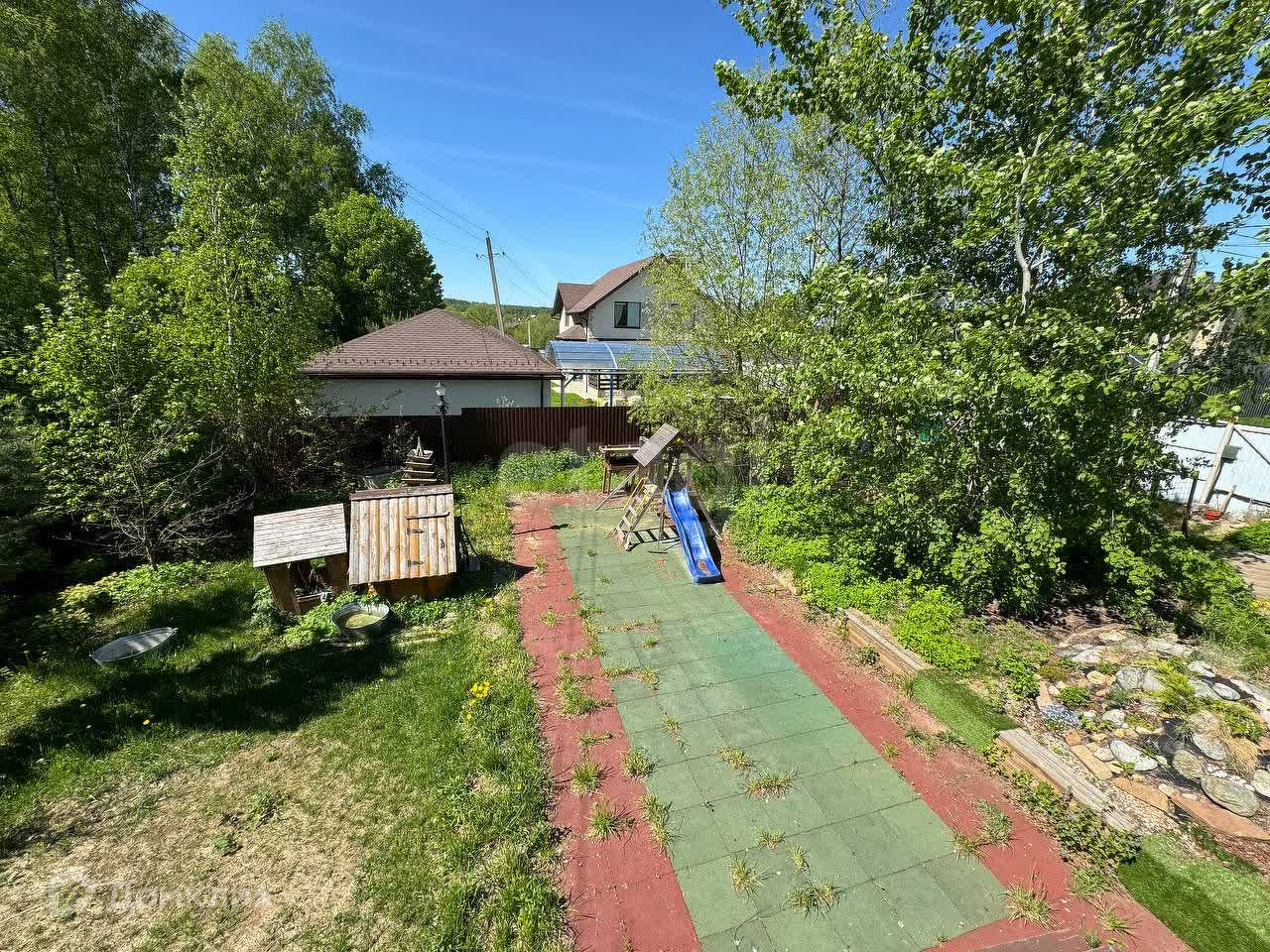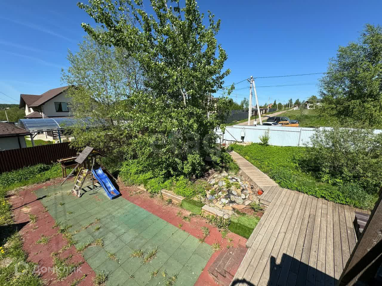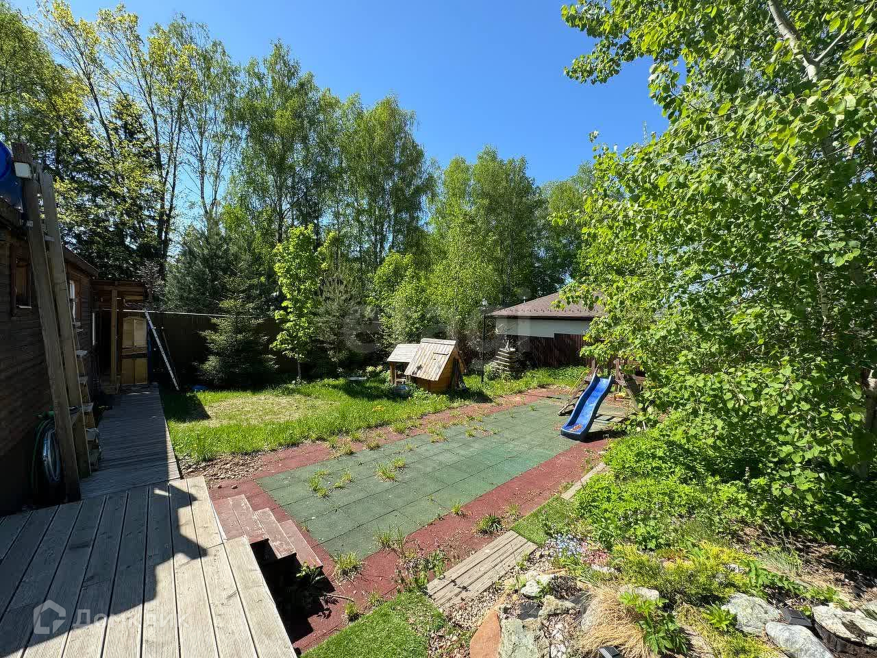 Участок полностью ухоженный! Имеет деревянный настил (45 м2) и дорожки. Оборудована детская площадка из резинового материала (54м2). Оборудована эко-парковка на две машины. На всех открытых участках настелен рулонный газон, организована большая клумба с цветами, туями и смородиной. На деревянном настиле смонтирована уютная беседка (12 м2) с мебелью.
