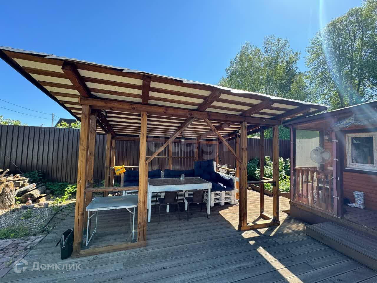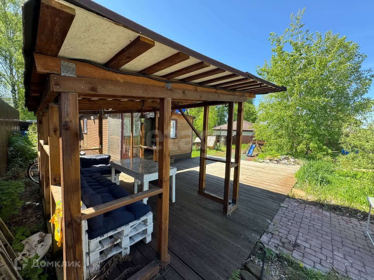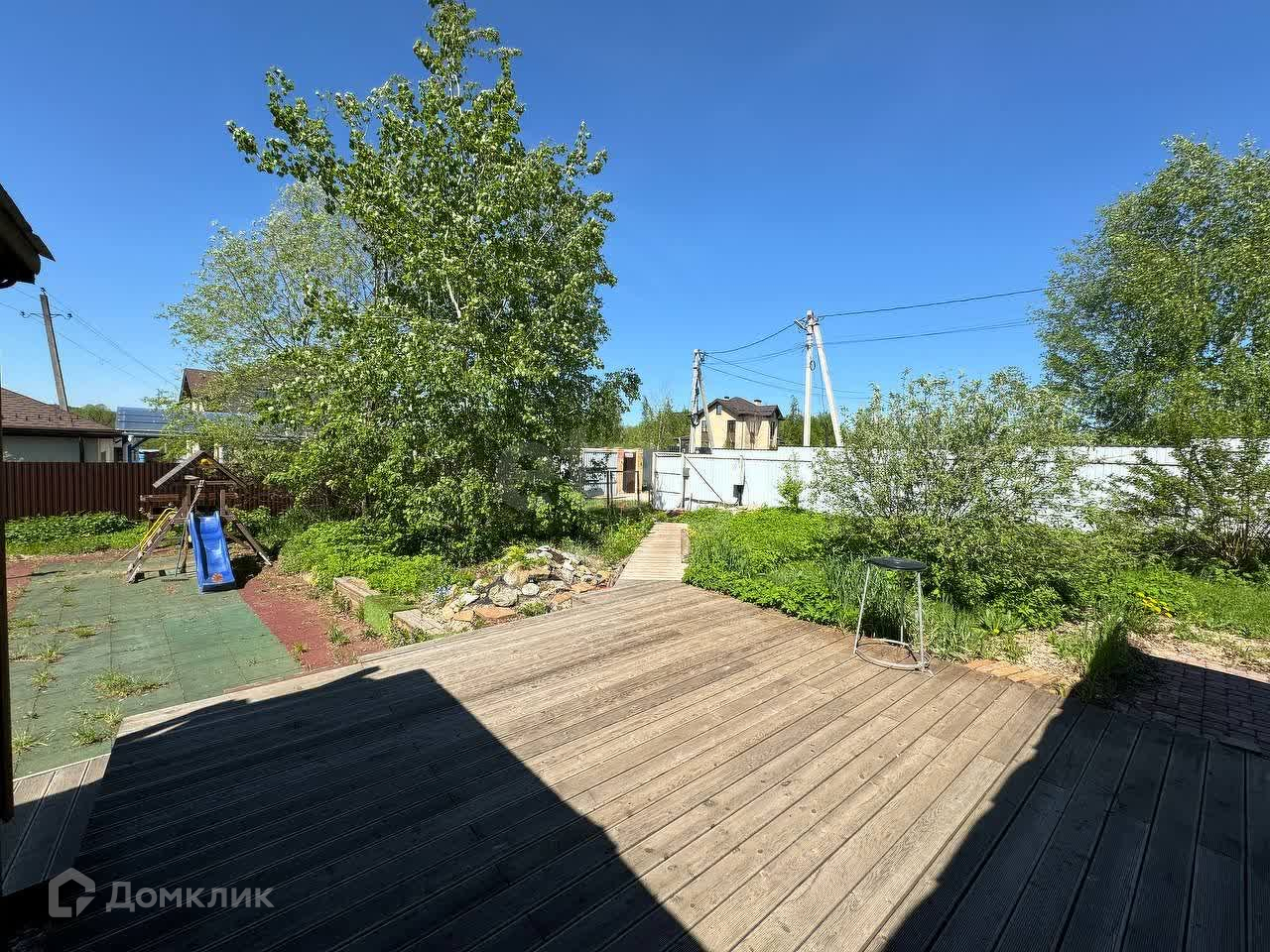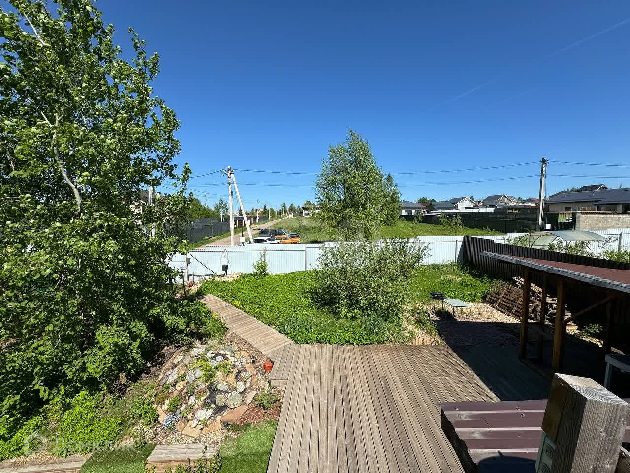 Участок полностью ухоженный! Имеет деревянный настил (45 м2) и дорожки. Оборудована детская площадка из резинового материала (54м2). Оборудована эко-парковка на две машины. На всех открытых участках настелен рулонный газон, организована большая клумба с цветами, туями и смородиной. На деревянном настиле смонтирована уютная беседка (12 м2) с мебелью.