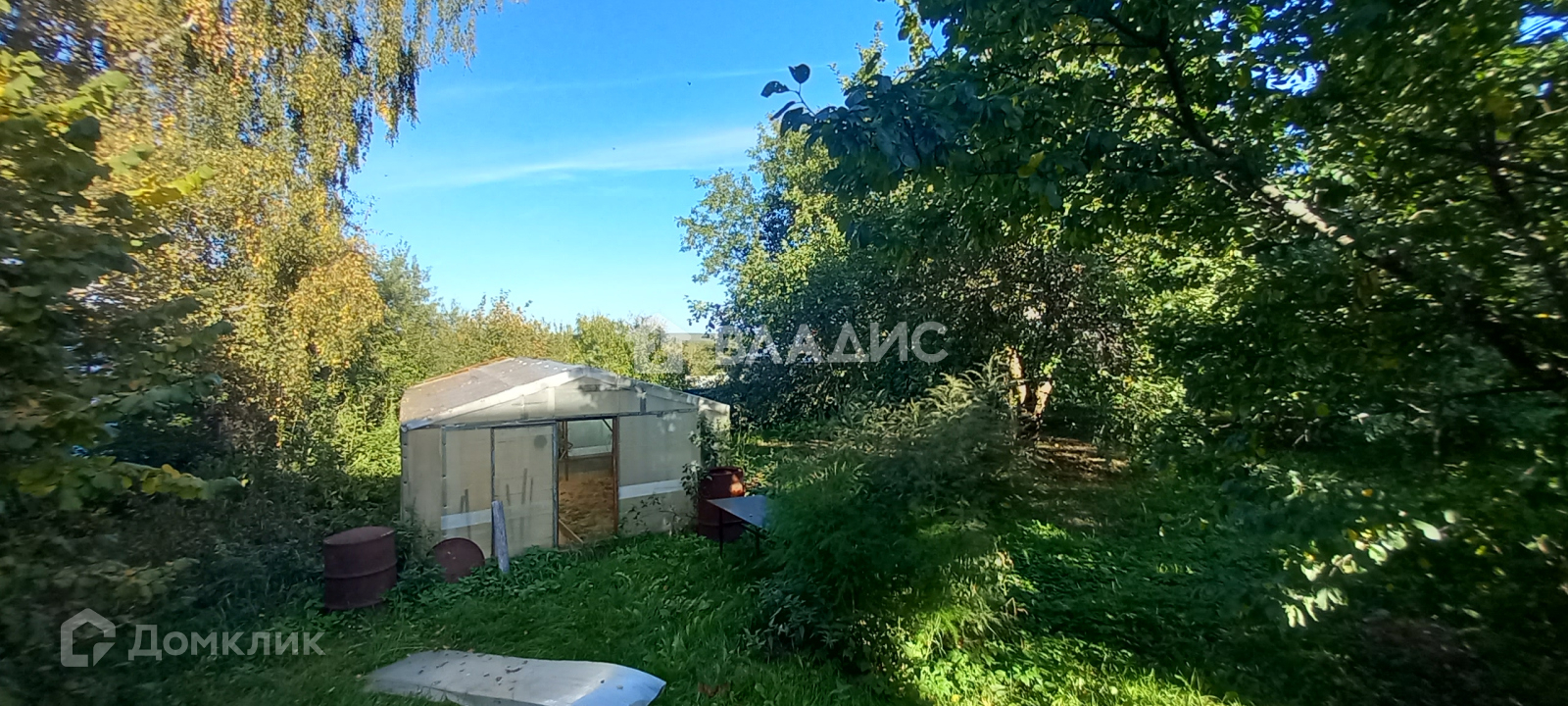 На участке много различных насаждений, несколько хоз. построек.