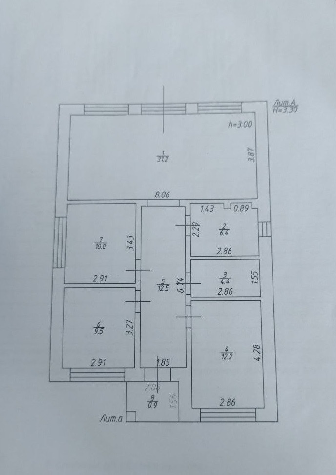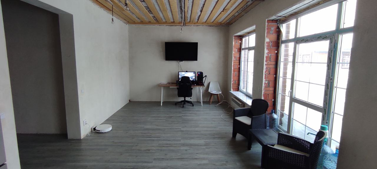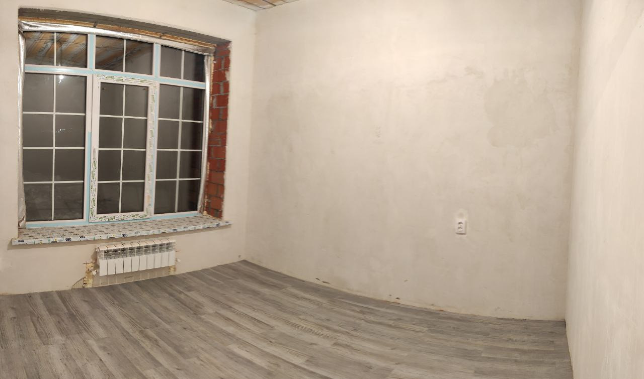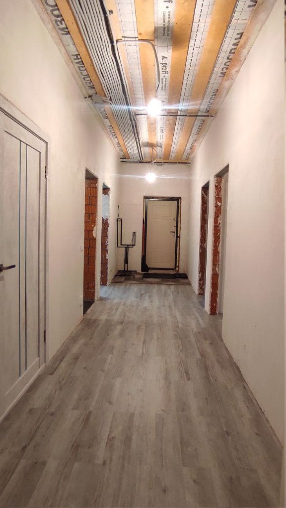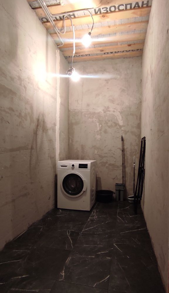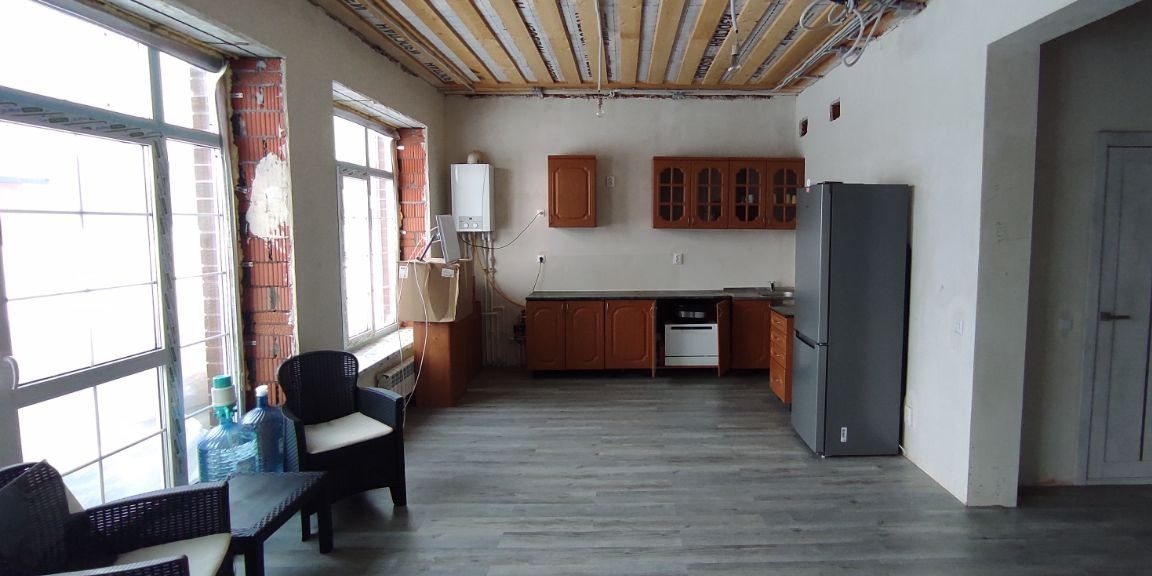 В доме имеются три жилые комнаты с площадью 12.2+9.5+10м2, большая кухня-гостиная 31.2 м2, а также просторный коридор, санузел и вспомогательное помещение. В настоящее время в доме выполнен ремонт в ванных комнатах и спальне, применены только высококачественные материалы. Дом был сдан с предварительной отделкой.