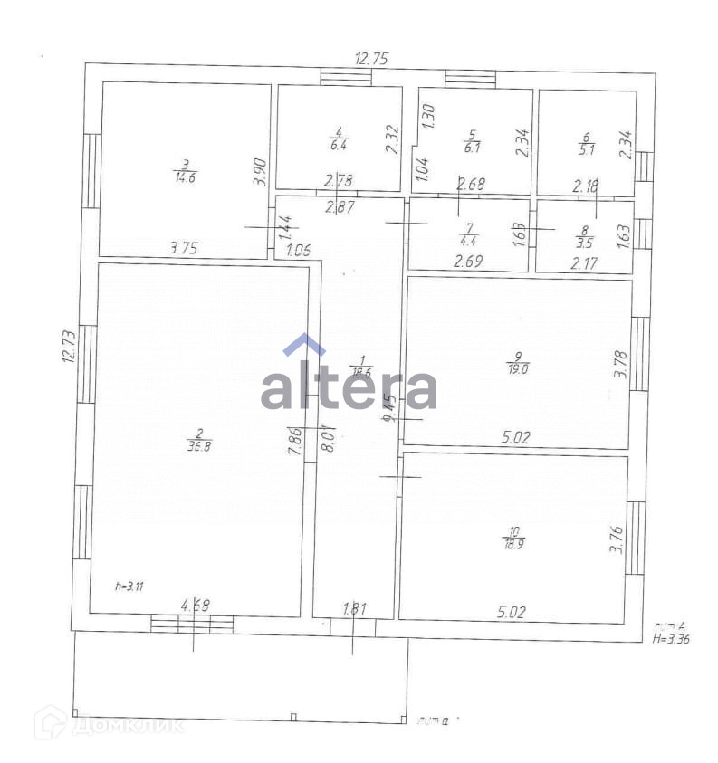 Высокие потолки – 3,11м.