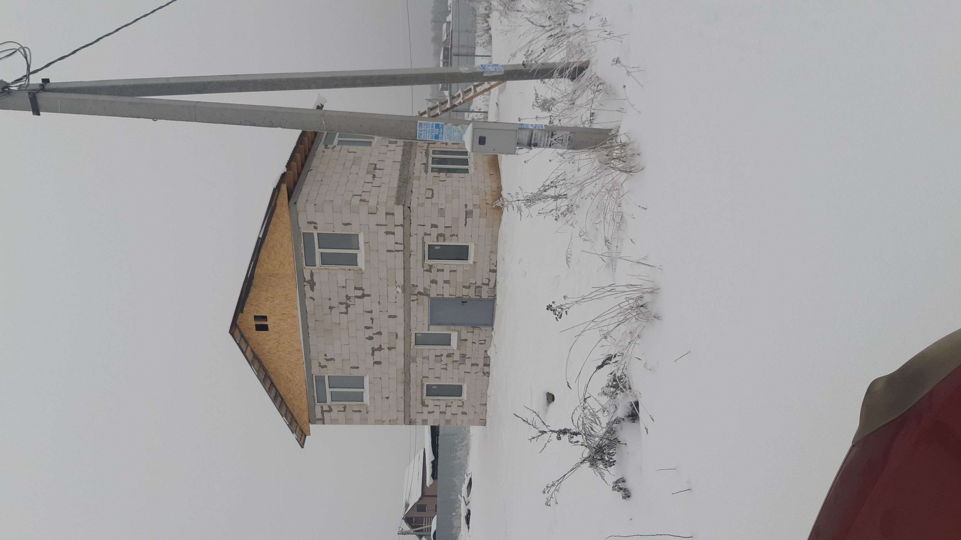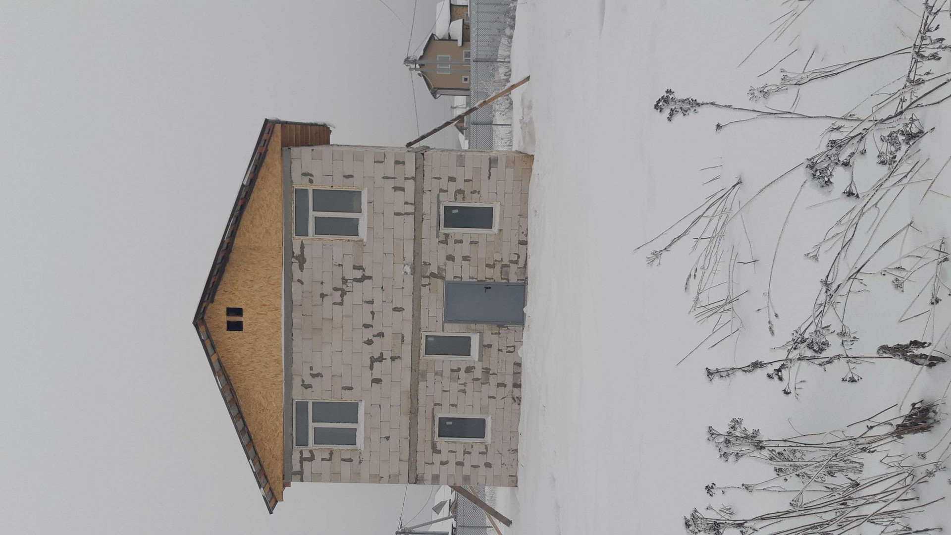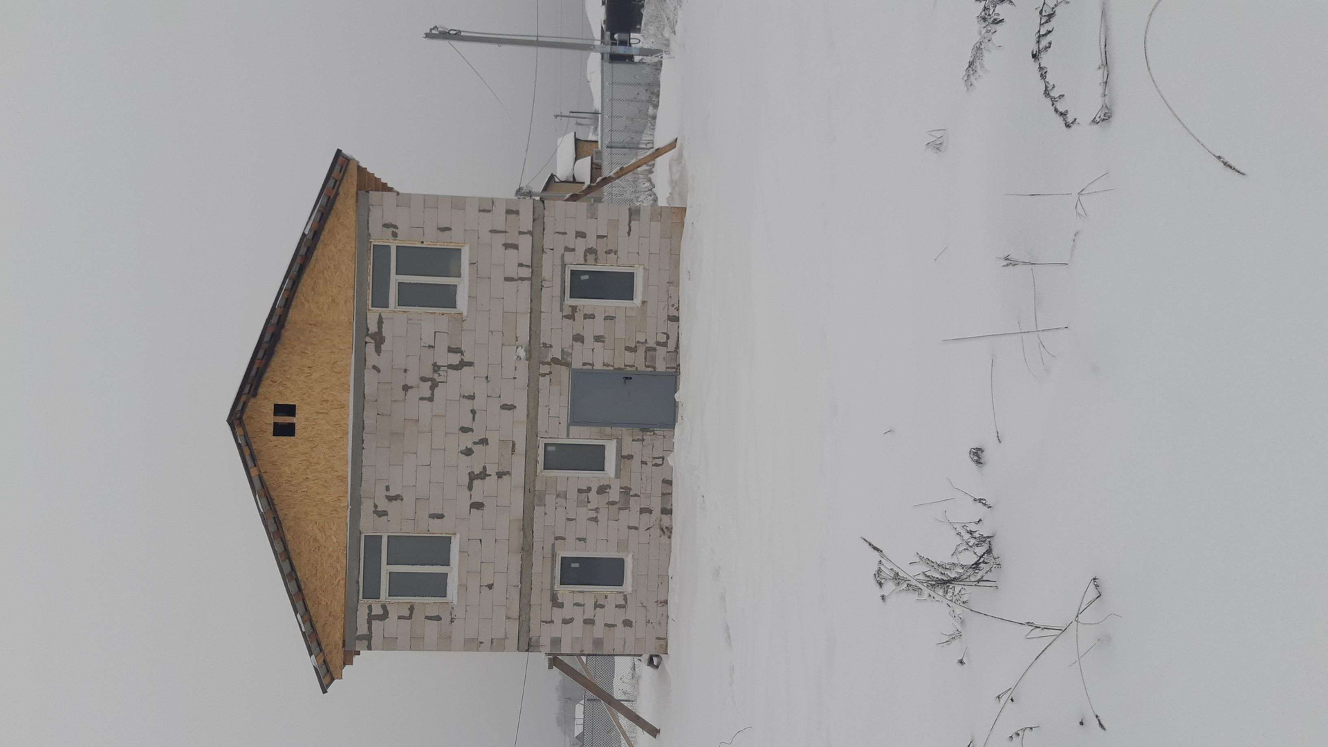 Дом без внешней и внутренней отделки. Заведены канализация (септик 4 кольца) и водоснабжение (скважина 23 м). Электричество -  щиток на столбе. Второй этаж 2 комнаты.