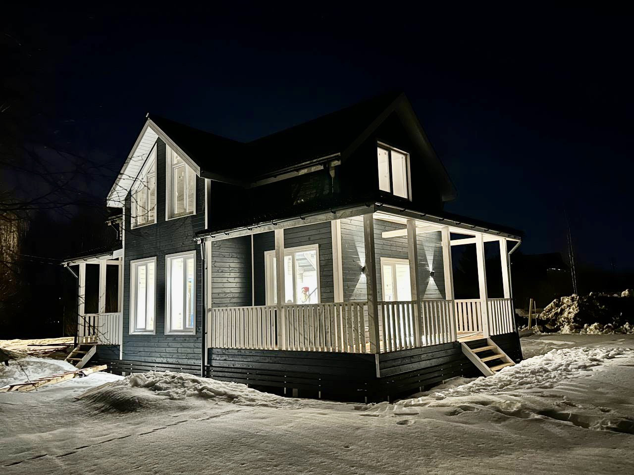 Использовалась доска камерной сушки, премиальные мембраны, качественный металл кровли, утеплитель высокой плотности, электрика и сантехника проведены скрыто в строгом соответствии с ГОСТ. Весь процесс проходил под контролем и с регулярными визитами ТЕХНИЧЕСКОГО НАДЗОРА, велись фото и видео фиксации этапов строительства.