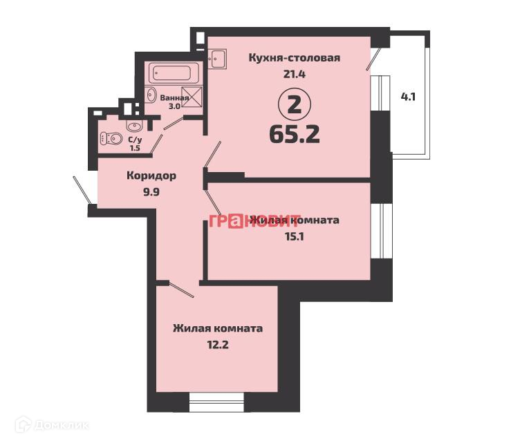 Общая площадь 65.2 м2