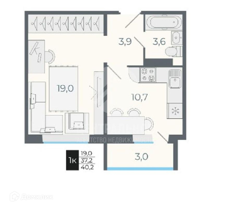 Общая площадь 40.2 м2