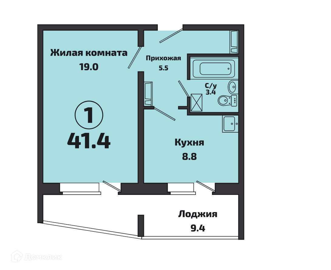 Общая площадь 41 м2