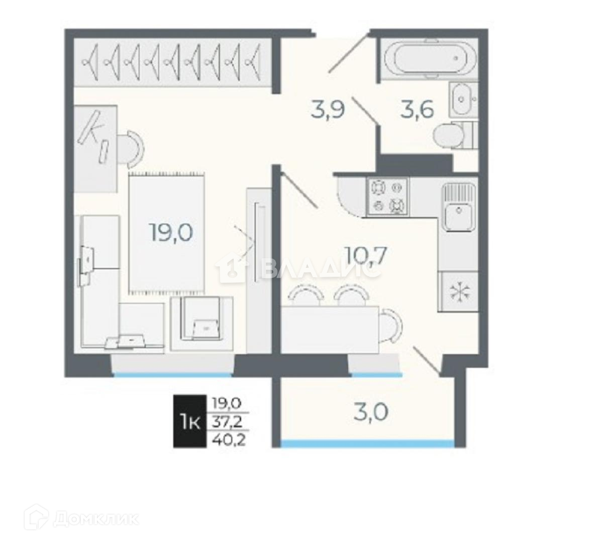 Общая площадь 40.2 м2