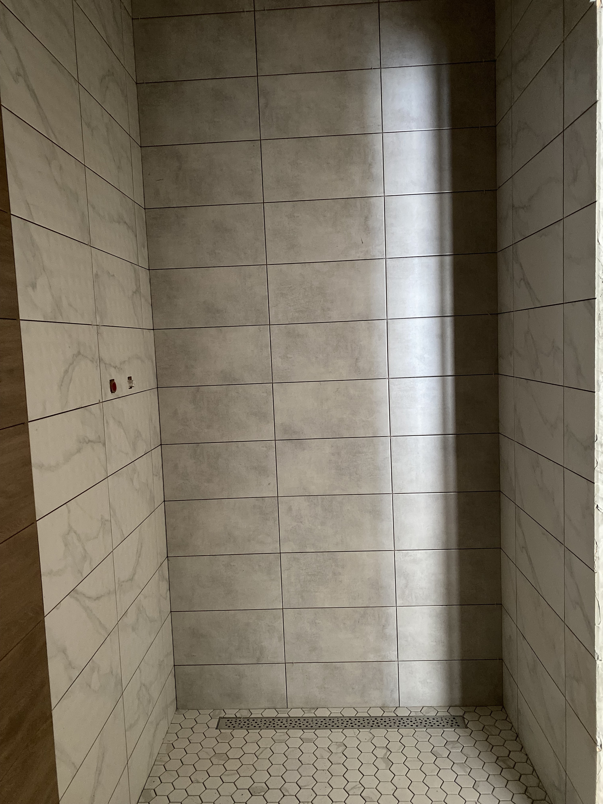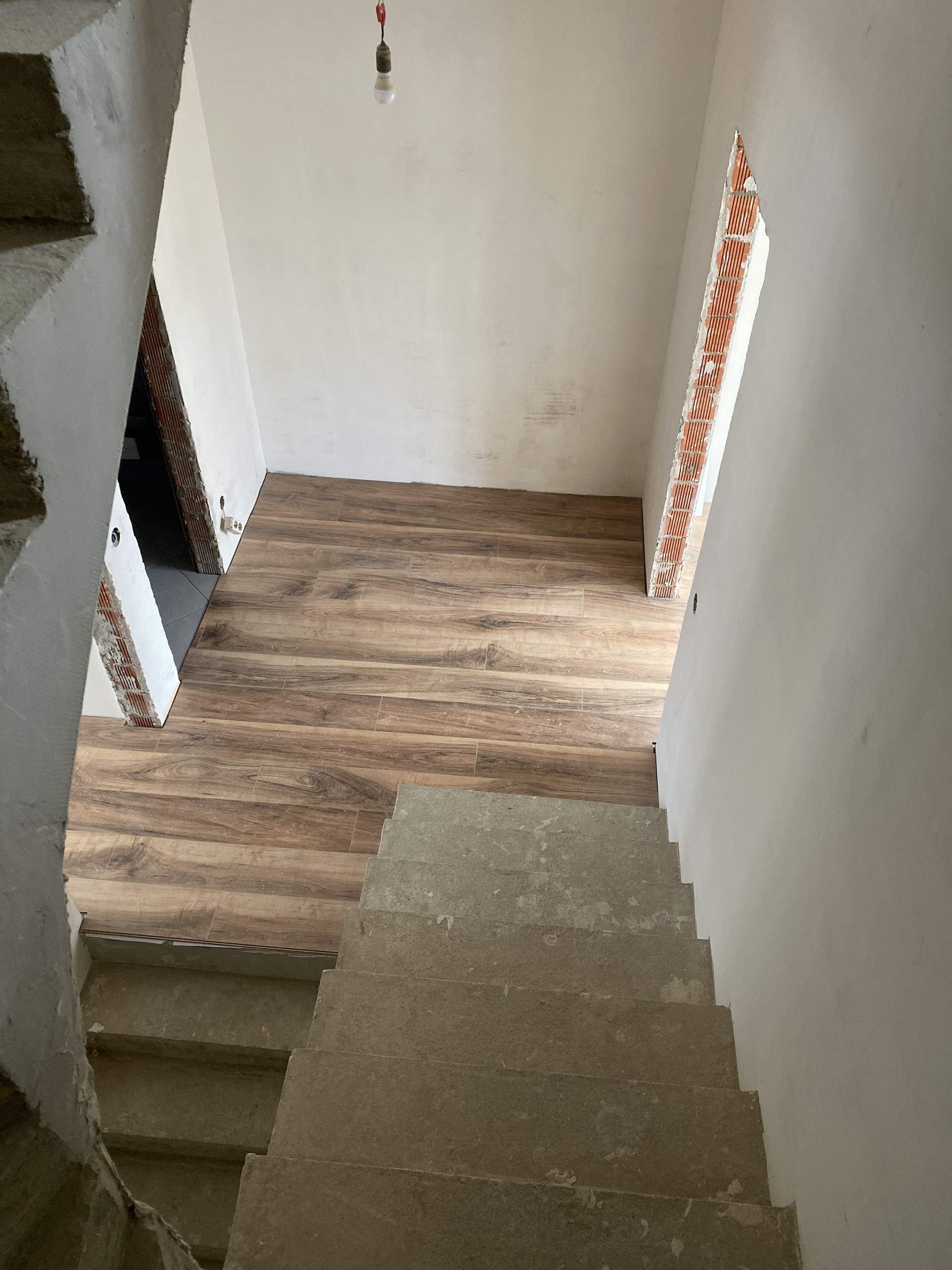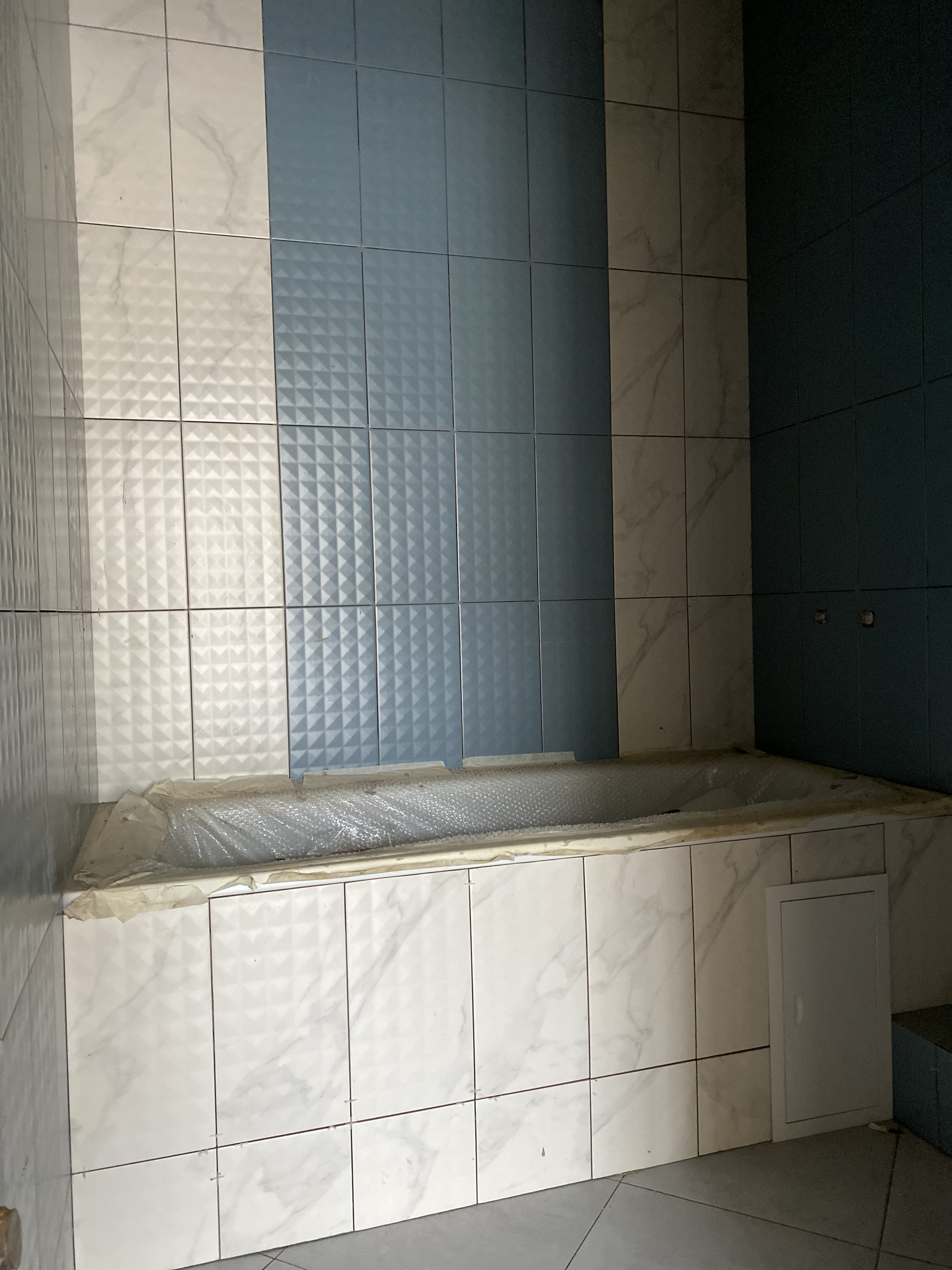 - произведена отделка с/узлов: стены керамическая плитка, пол – керамогранит, произведена разводка электрики, разводка труб до конечных точек потребления.