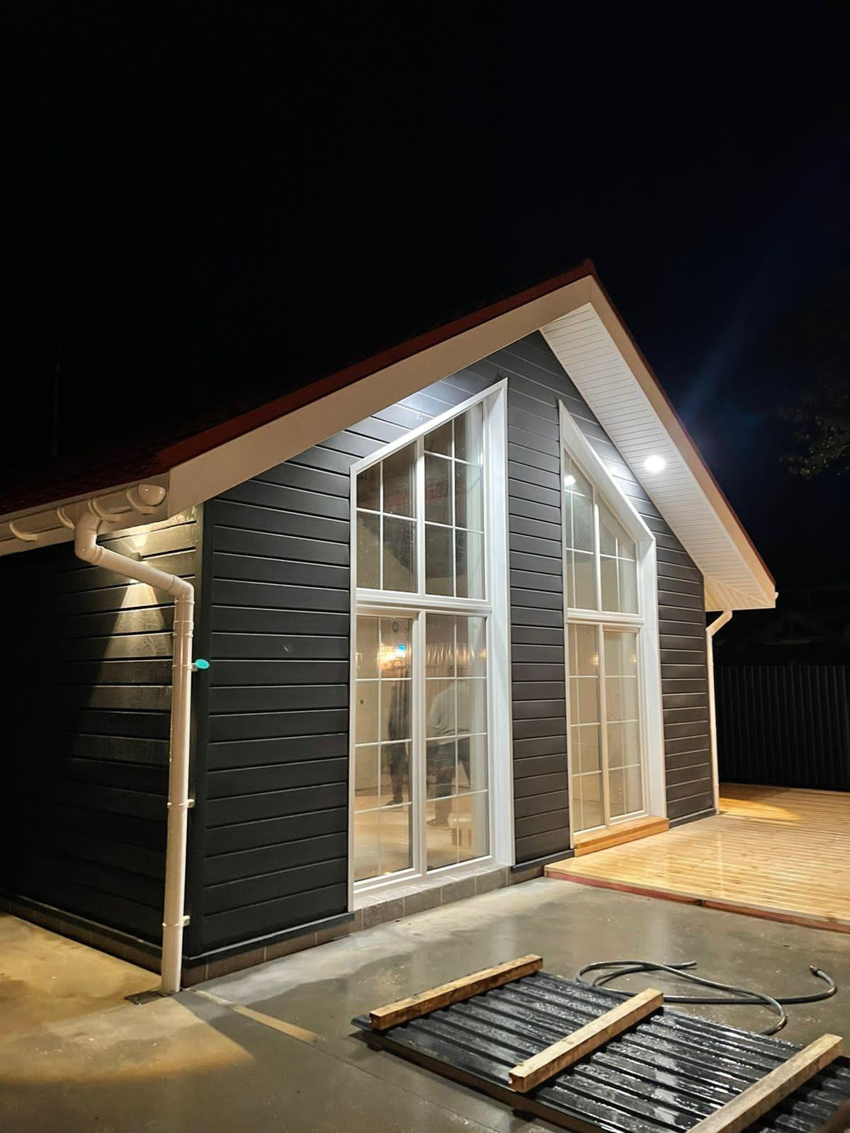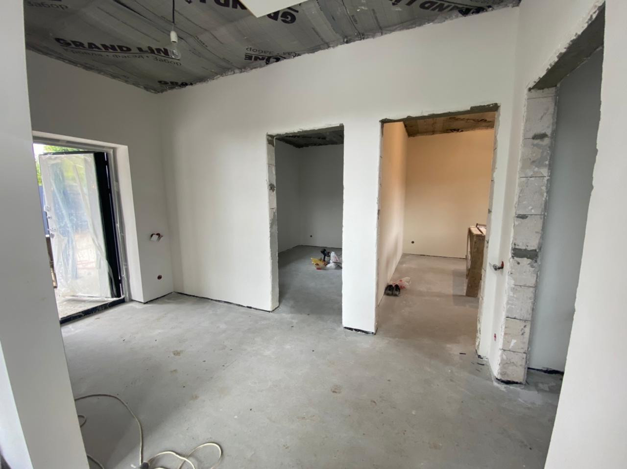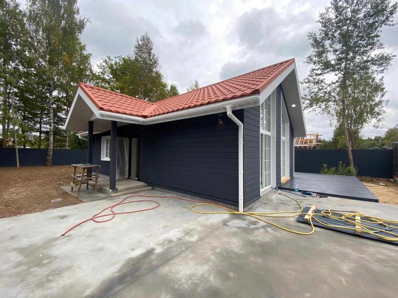 Строительство дома завершено, ведутся отделочные работы.