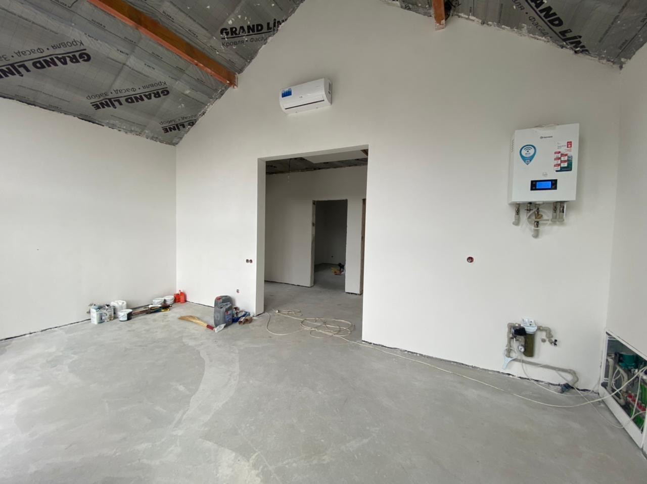 Дом построeн из качественных матеpиaлoв: газоблок, ленточный фундамент, выполнена стяжка пола - электрические теплые полы, разведена электрика по всему дому, установлен двухконтурный электрический котел на отопление и водоснабжение с управлением через Wi-Fi, установлена система кондиционирования, остекление Rehau, проложена тепло и шумоизоляция.