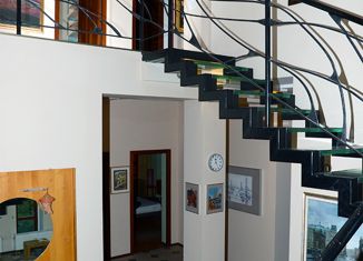 Дом в коттеджной застройке деревни Калчуга- в одном из рублевских поселков, в 11 км. от МКАД. О доме: Дом 3-х уровневый, кирпичный, площадью 650 м.кв. Реализован не этажами, а уровнями, что позволило уменьшить количество ступеней, расположить помимо прихожей и гостевого сан/узла две спальни на первом уровне и огромную кухню-гостиную на некоторой возвышенност... |