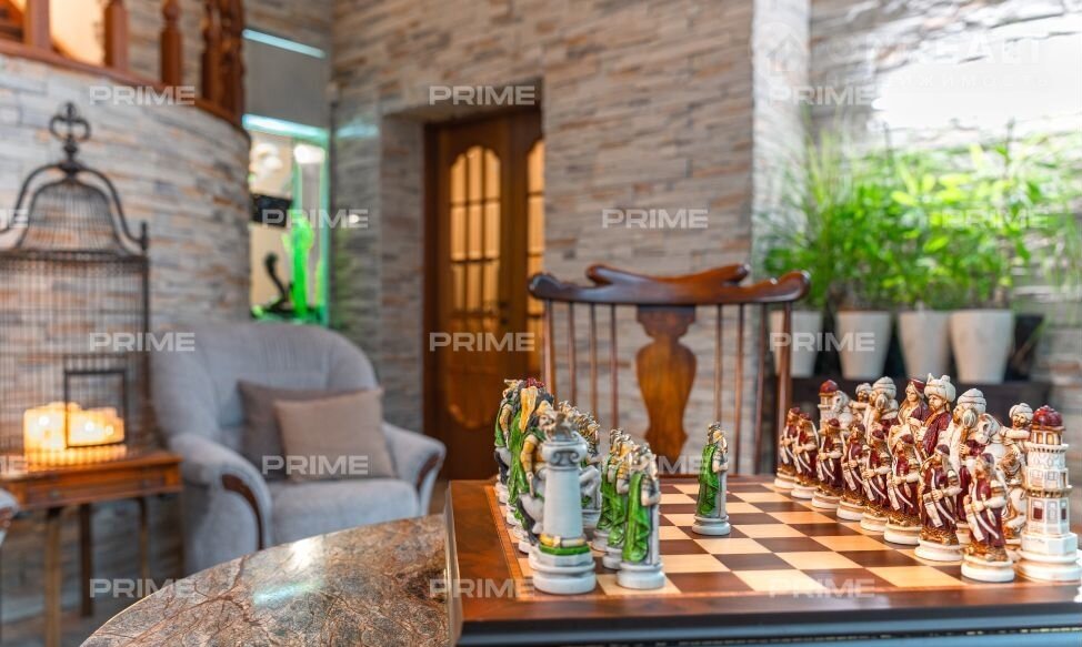 Это свободный особняк для семьи, которая ведет здоровый образ жизни. На участке свой фитнес-центр площадью 80 м2: бассейн 5-15 метров, глубина от 1.4 до 3 метров, и баня на дровах из лиственницы плюс теннисный корт с профессиональным покрытием.