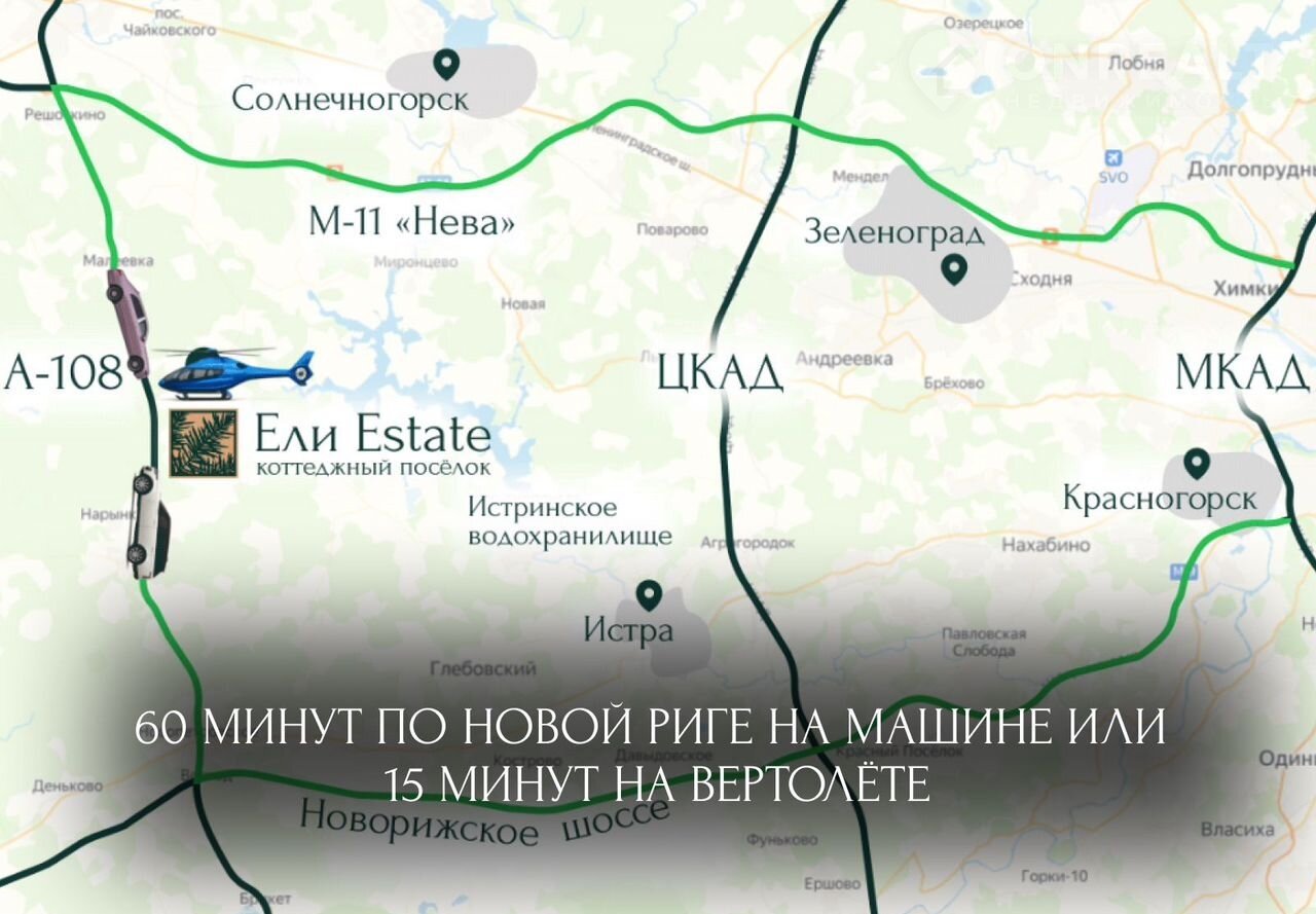 — Доступ к воде: каскад прудов на 1,5 ГА с пляжем и пирсом + 2 км до Истринского водохранилища