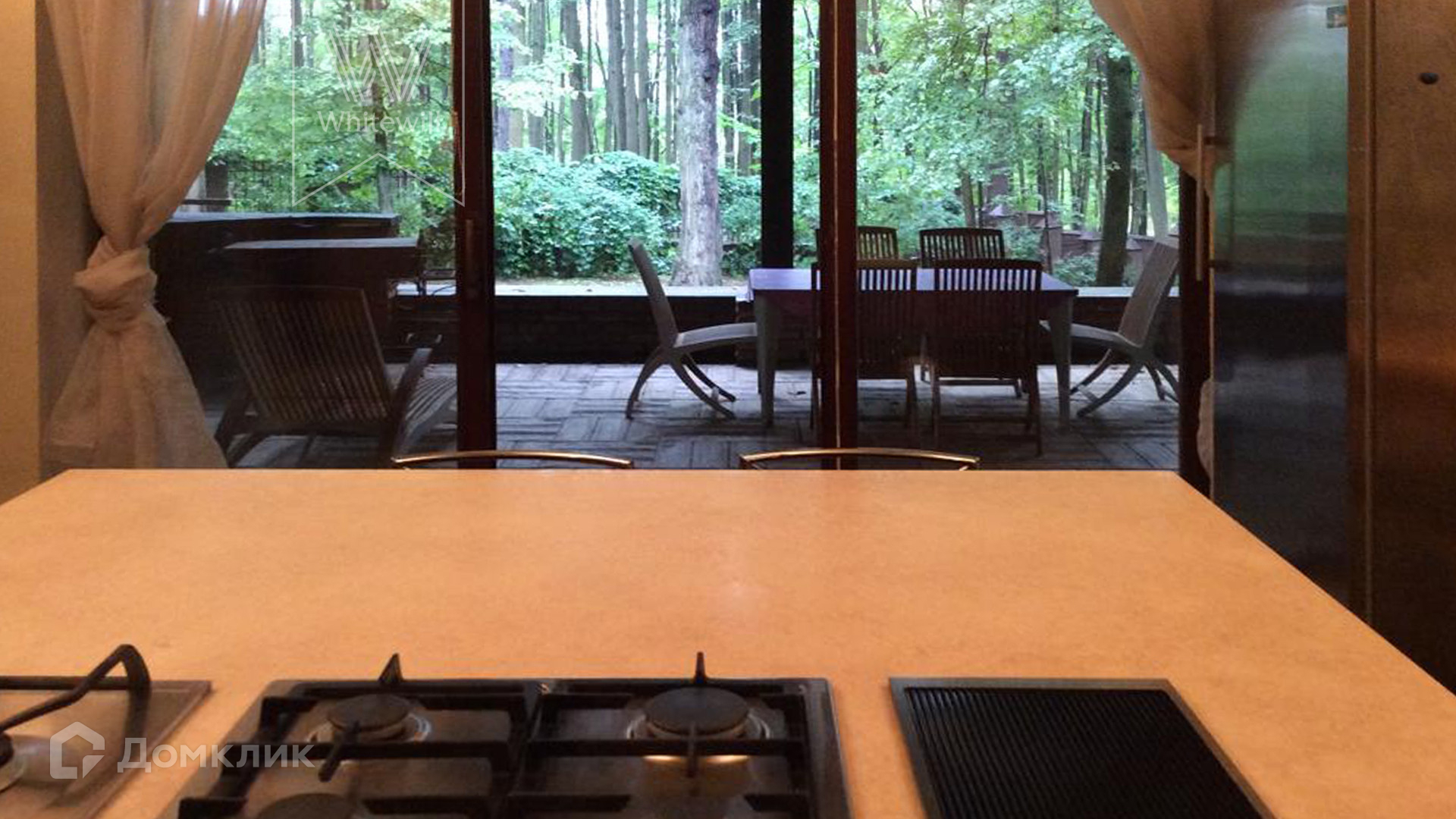 ID 11 948. Калчуга. Загородная резиденция площадью 300 м² построена на просторном участке 25 соток с лесными деревьями. Фасад дома выполнен в европейском стиле и облицован коричневым клинкером и молочной штукатуркой. В отделке современного интерьера преобладают светлые теплые оттенки. Планировкой коттеджа предусмотрены 2 спальни, уютная гостиная с камином и кухня-столовая с выходом на террасу. Рядом расположен гараж на 1 машину с домиком для охраны. На участке выполнен ландшафтный дизайн, вымощены дорожки и засеян газон.