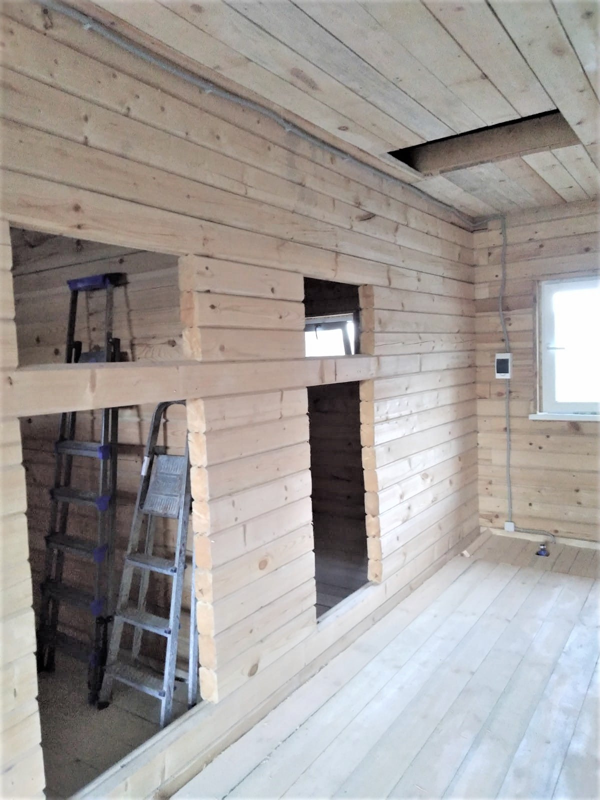 Внутренняя отделка требует минимум вложений за счет обрезного бруса.