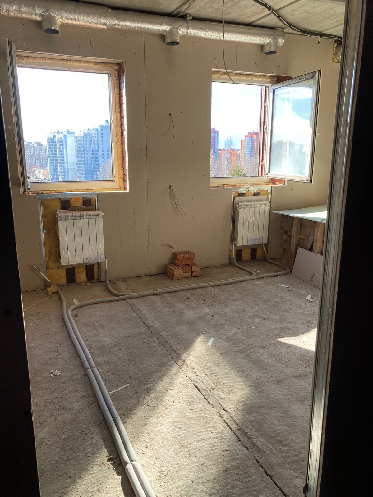 Вид из окон: с одной стороны - на мкр. Южный, г. Всеволожска, с другой на зеленое поле.