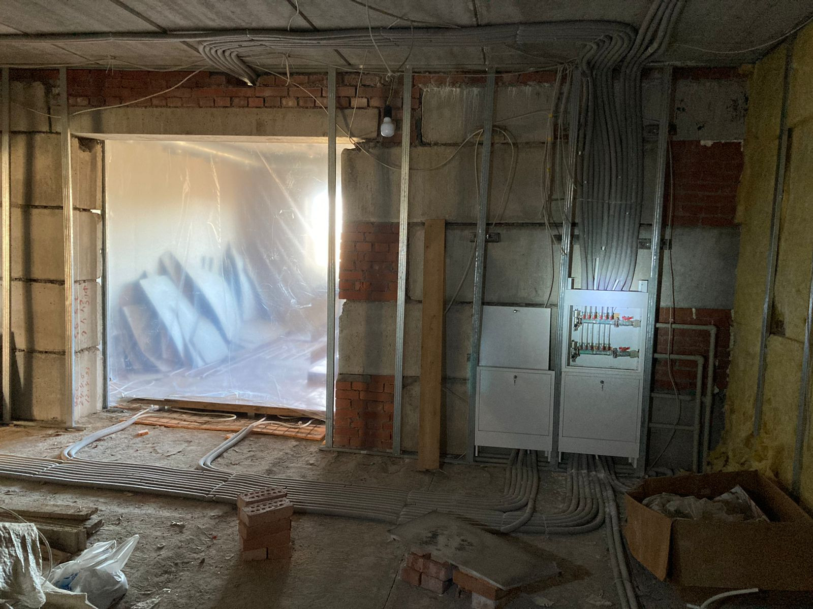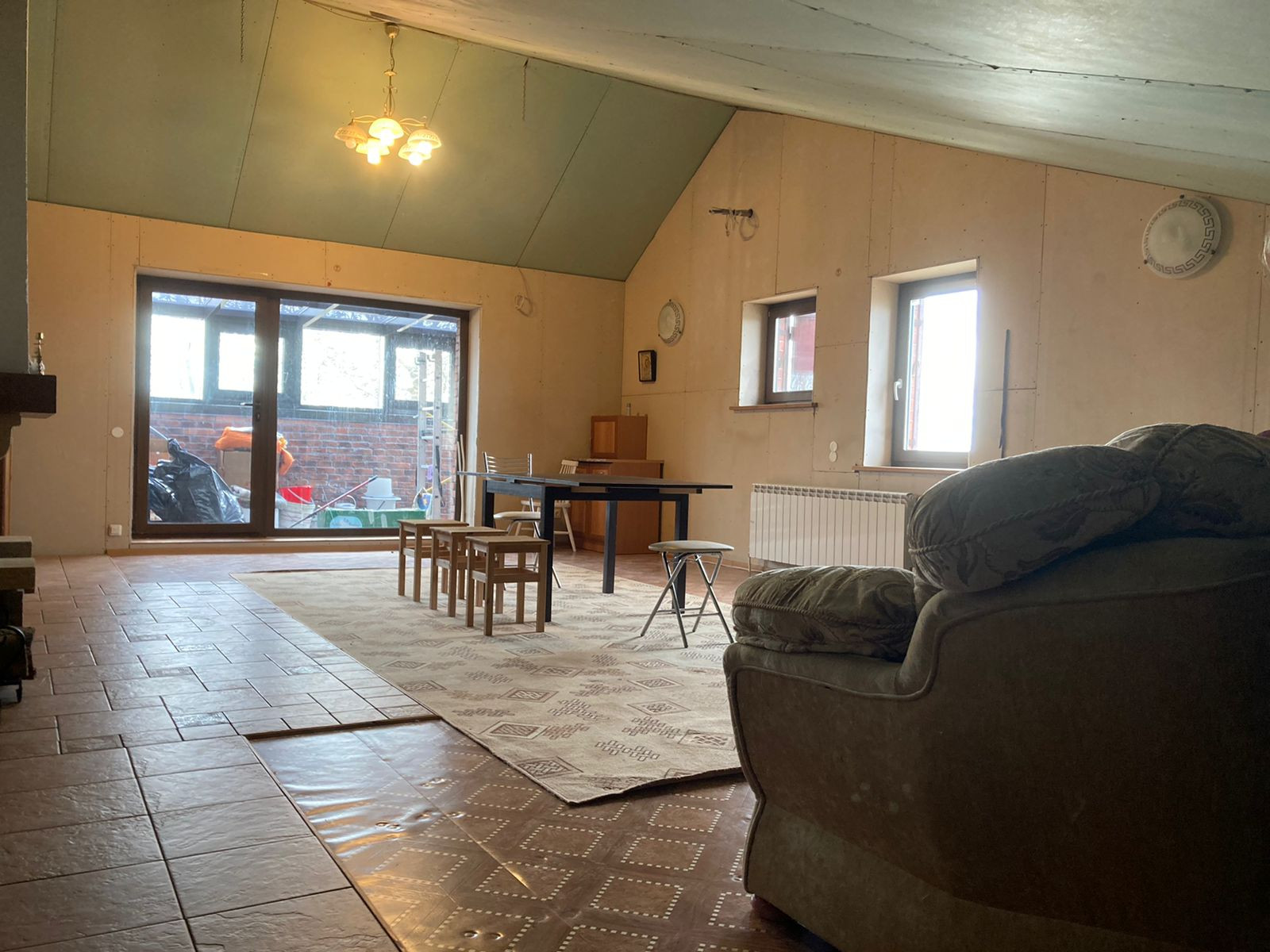 Площадь дома 323 кв. м. Материал стен кирпич. Кровля - металлочерепица. Фундамент ленточный сборный. Сделана предчистовая отделка. Разводка электрики и отопление. Теплый пол.