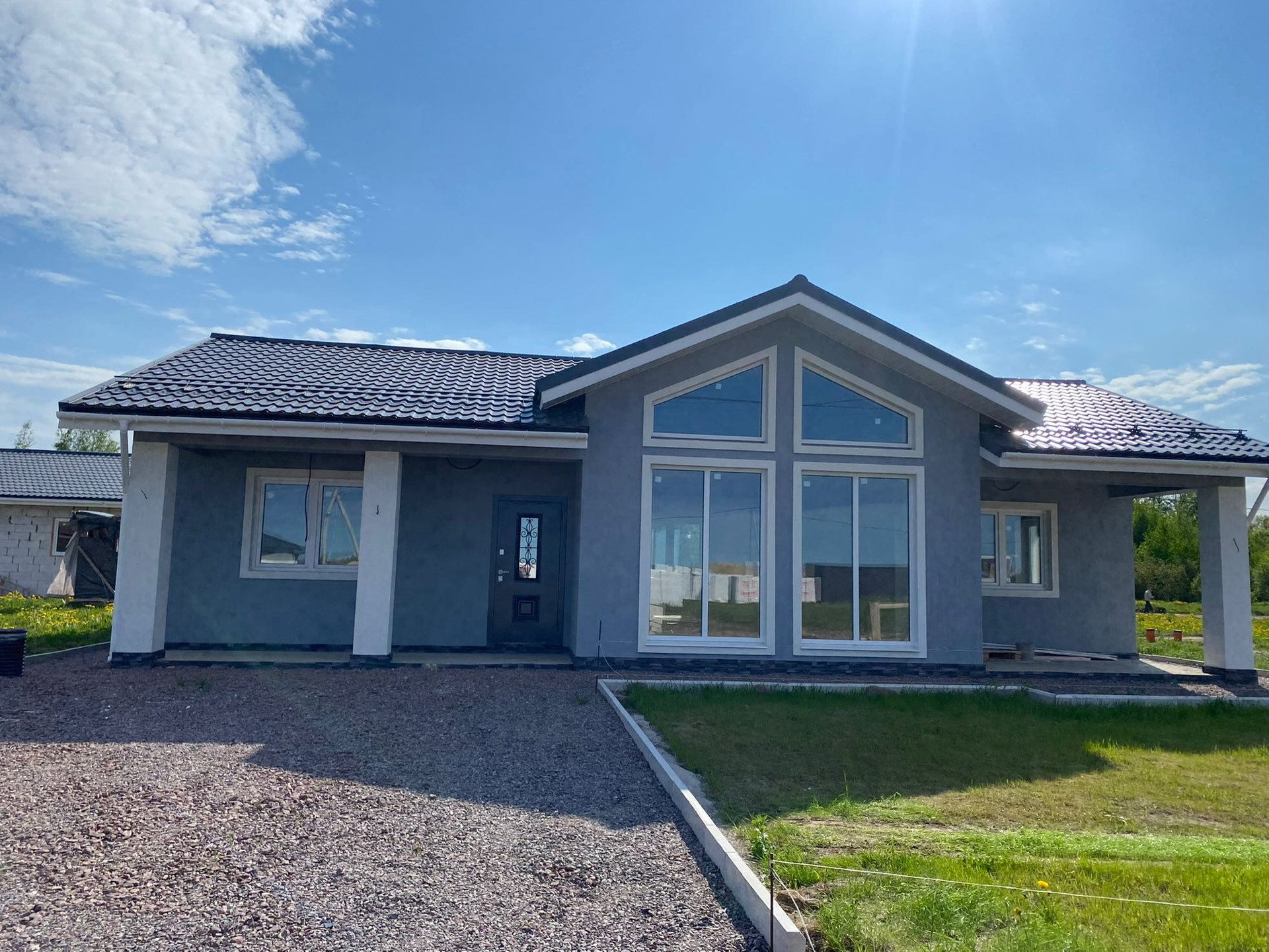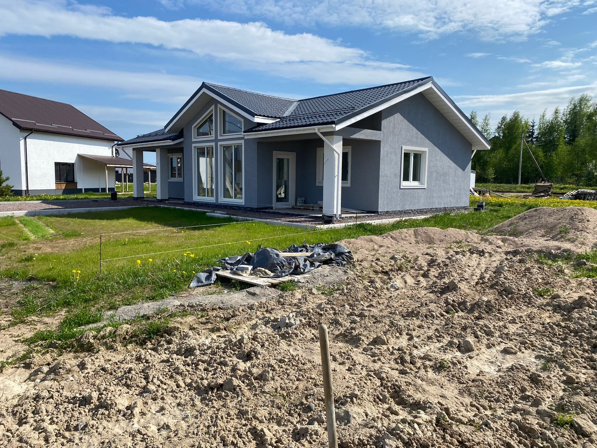 Срочно продаётся новый дом из газобетона (400мм) на участке площадью 6 соток. Участок ровный и чистый, озеленен газоном. Есть собственный заезд и парковочное место.
