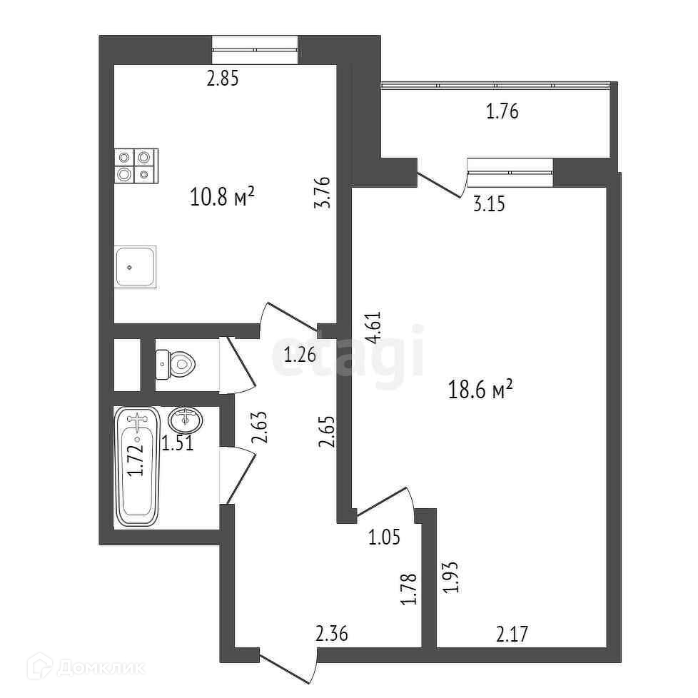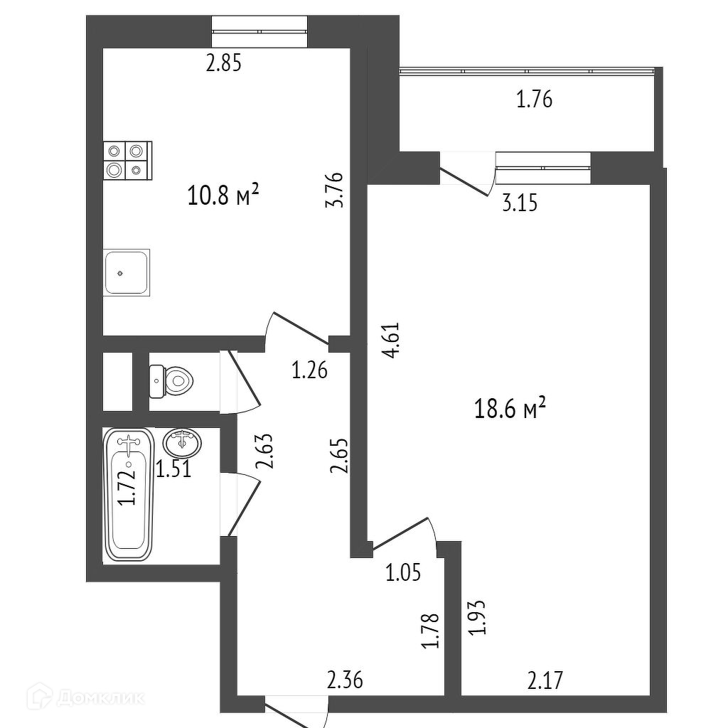 Общая площадь 40.4 м2