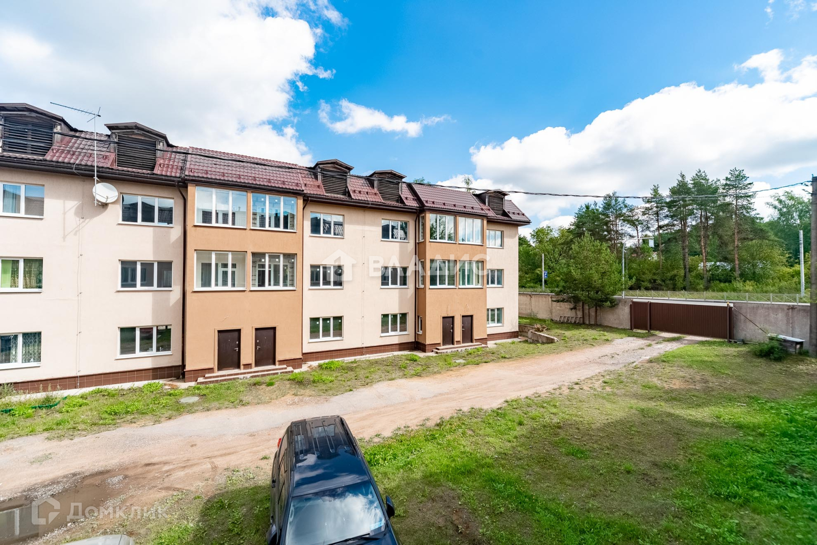 Общая территория в 50 соток полностью закрытая, въезд через закрытые ворота по пульту, на ней стоит 2 одинаковых таун-хауса на 16 семей, у каждого свой мини-участок, гараж. Свободная парковка, есть детская площадка, есть запасной выход.