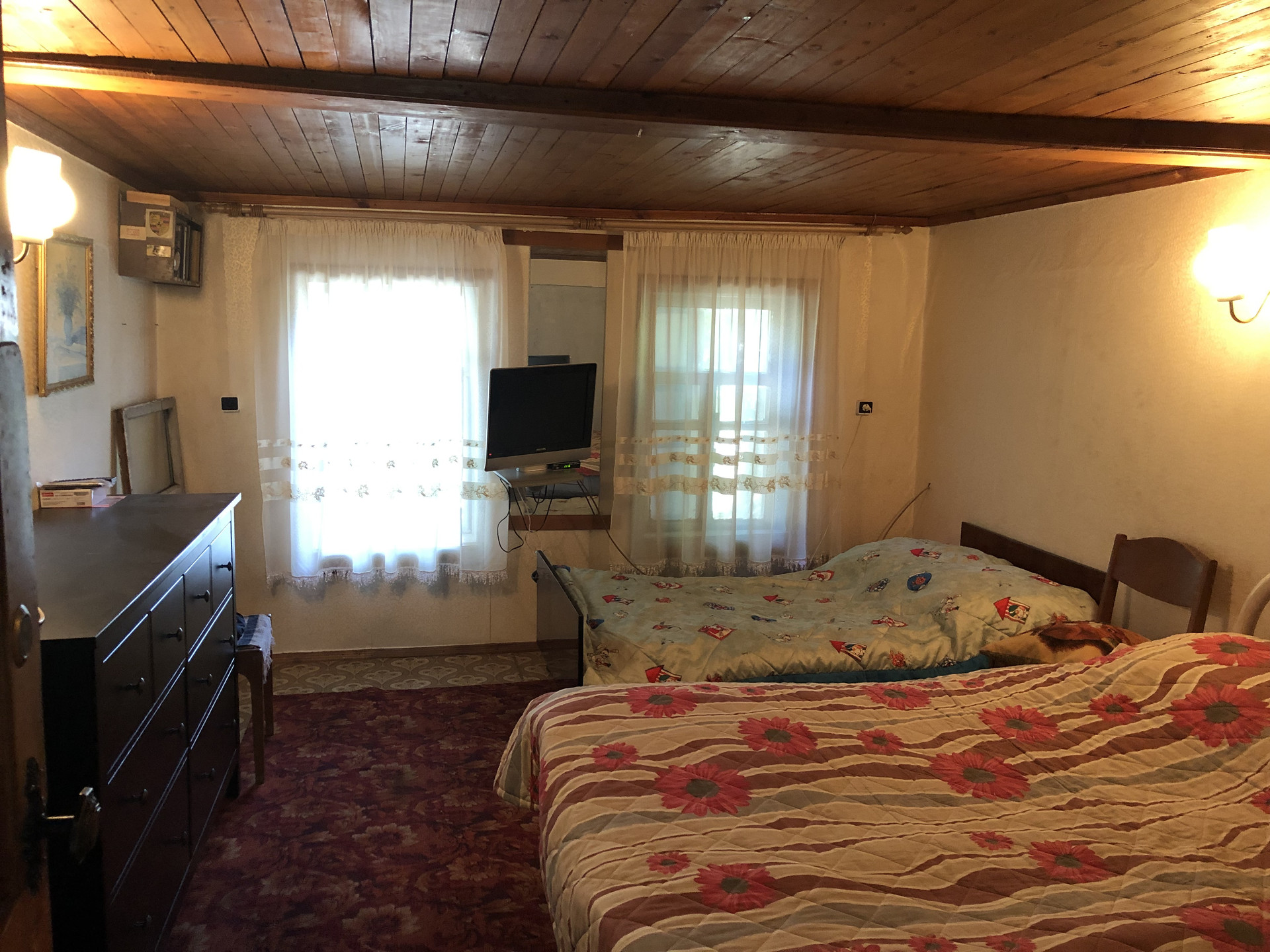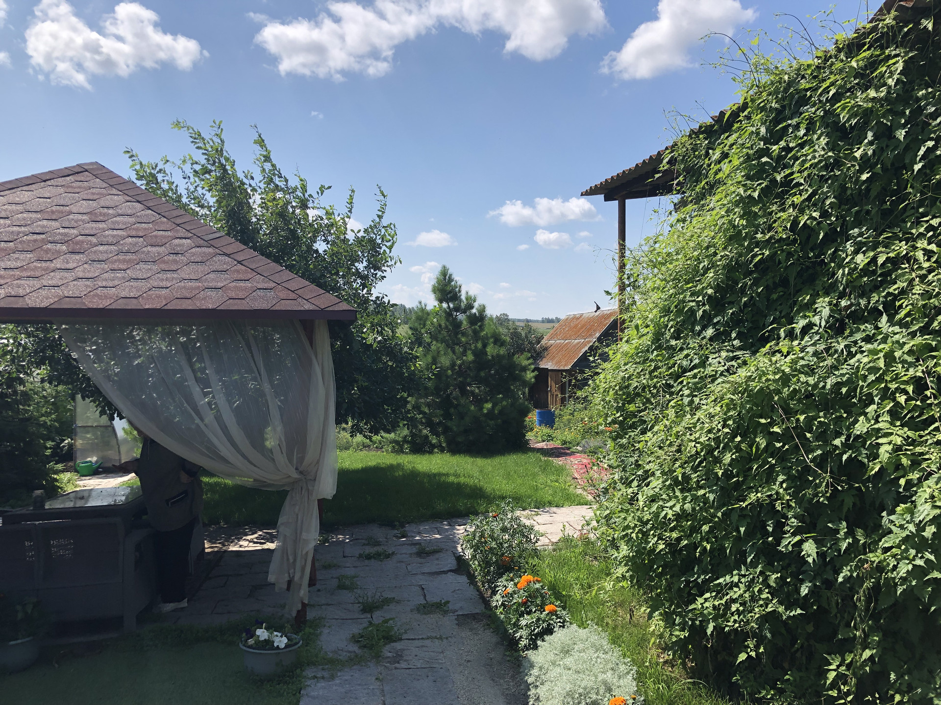 Газ, скважина, разводка воды по огороду, отопление дома на дровах, навес на 4 машины, теплица 6х6, баня, большая беседка, выход на речку Коелга, рядом водохранилище, Собственник Алексей.