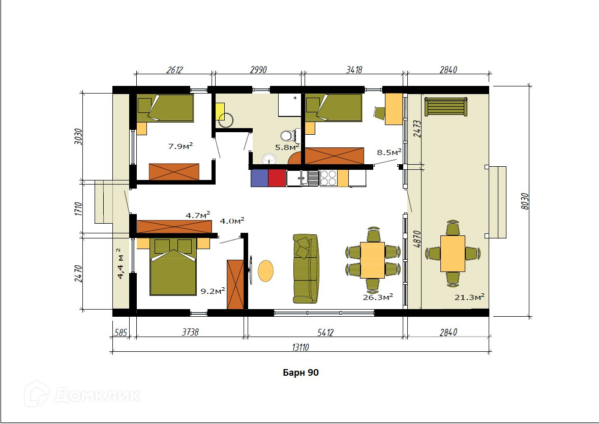 Общая площадь 90 м2