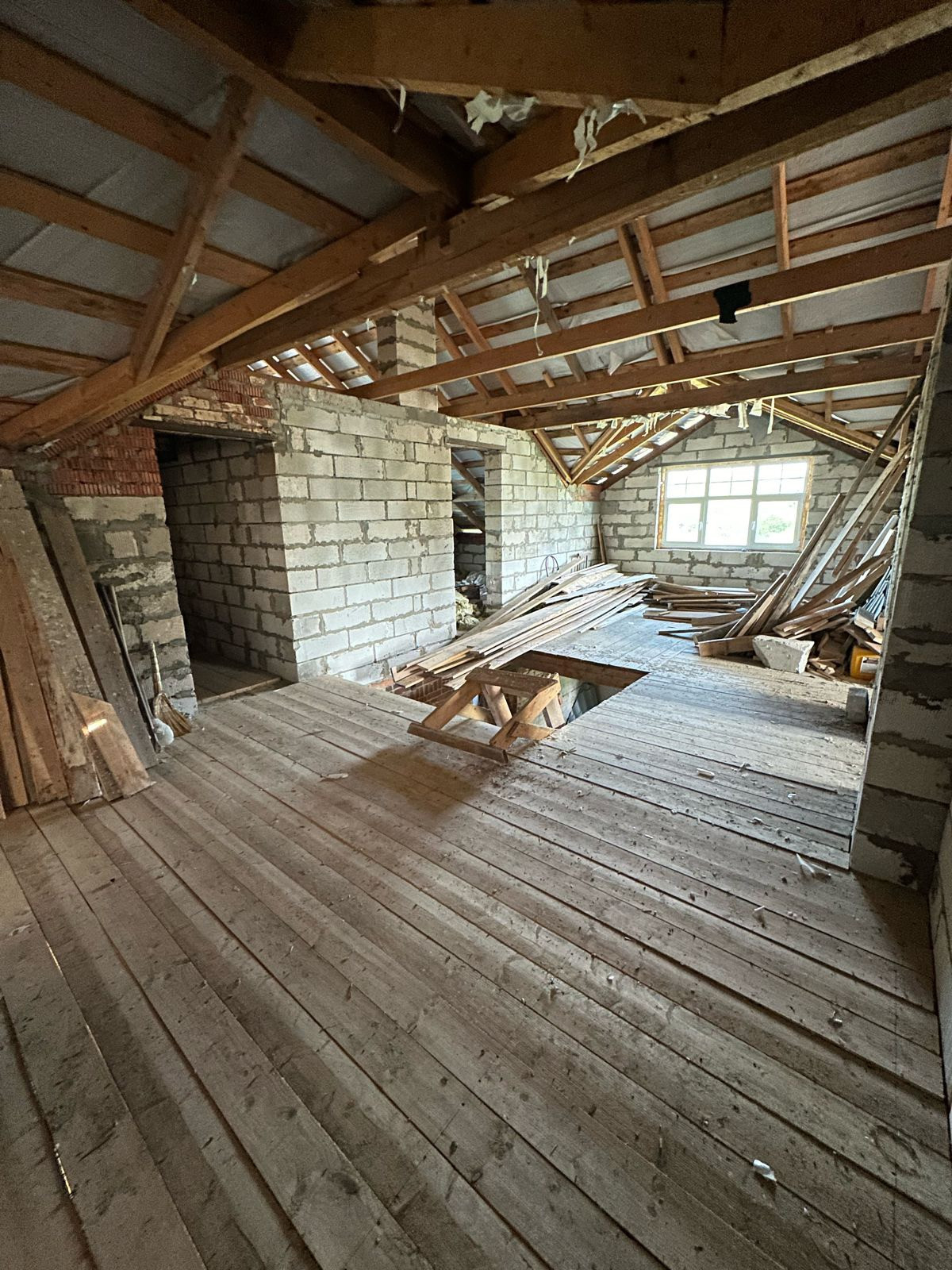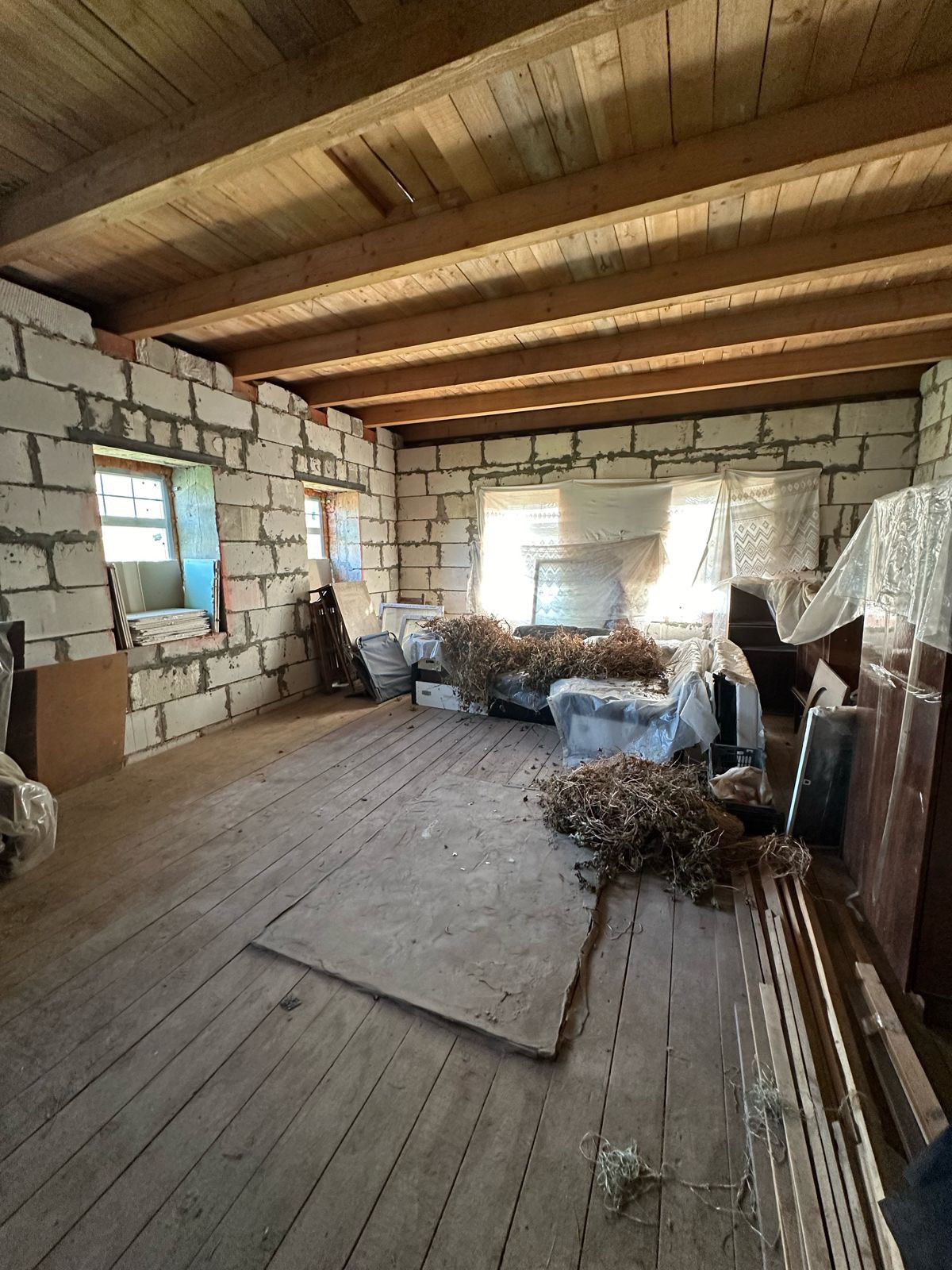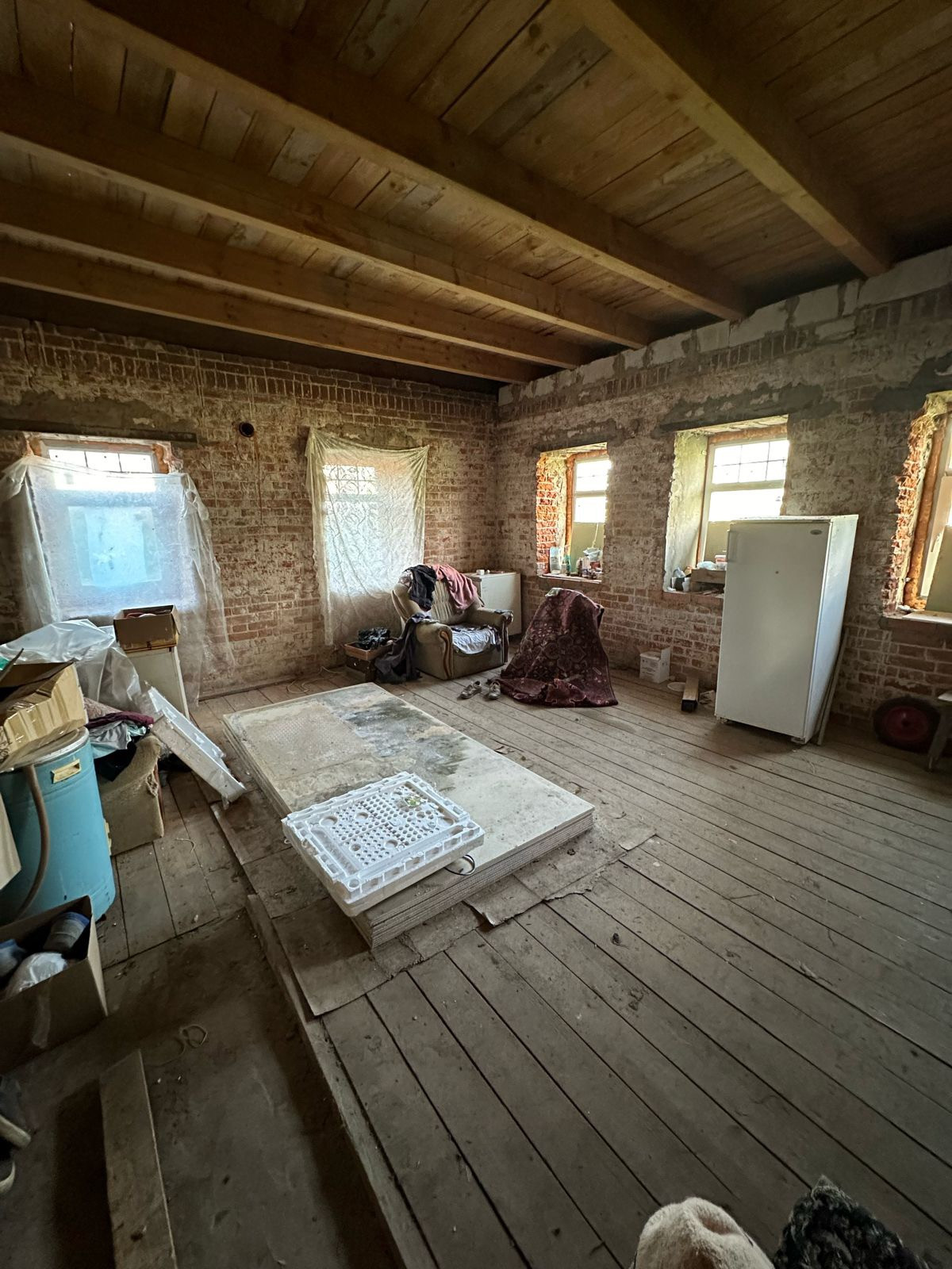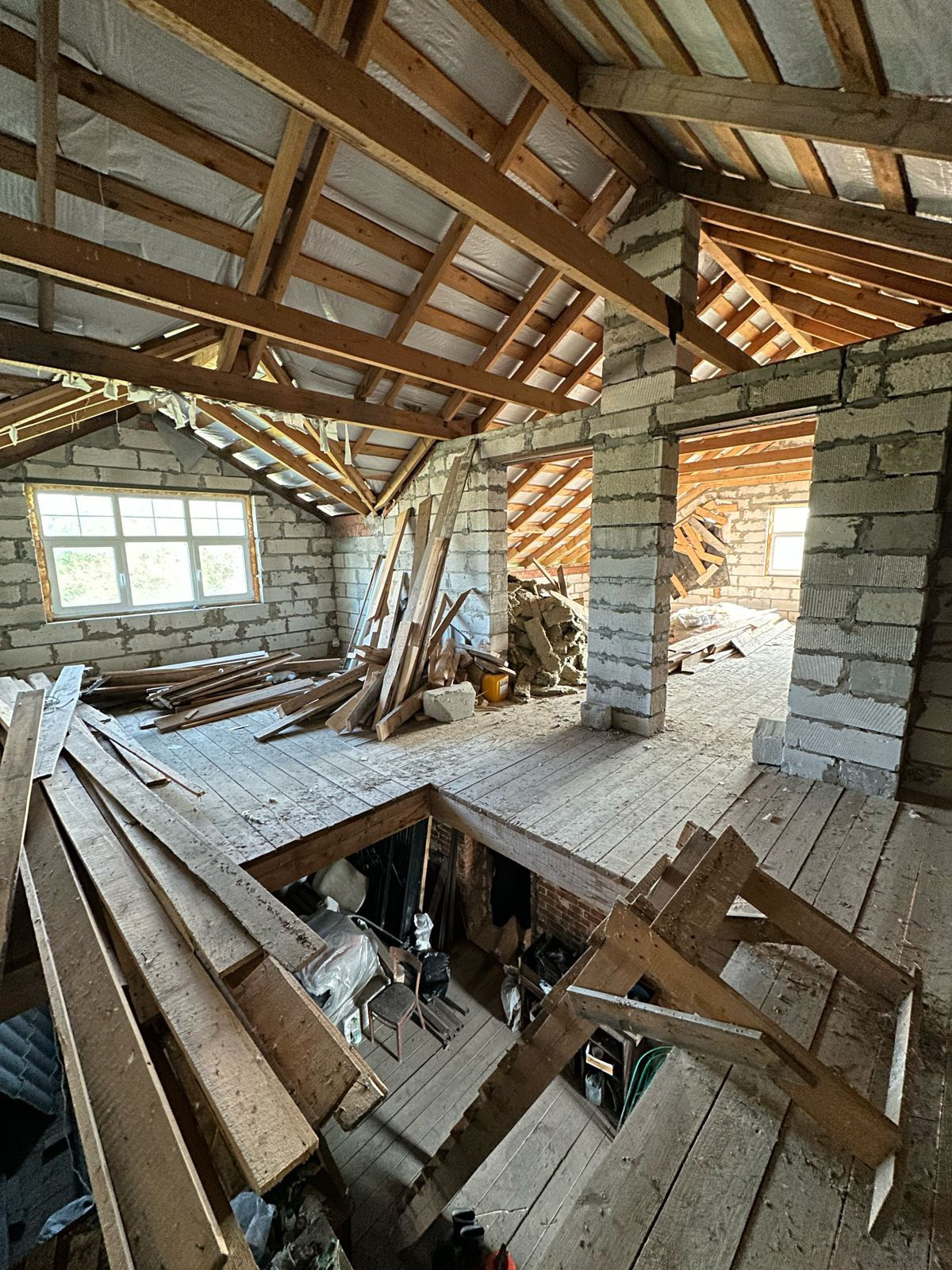 Достройка верхнего этажа была сделана 2 года назад.  На окнах стеклопакеты ПВХ.
