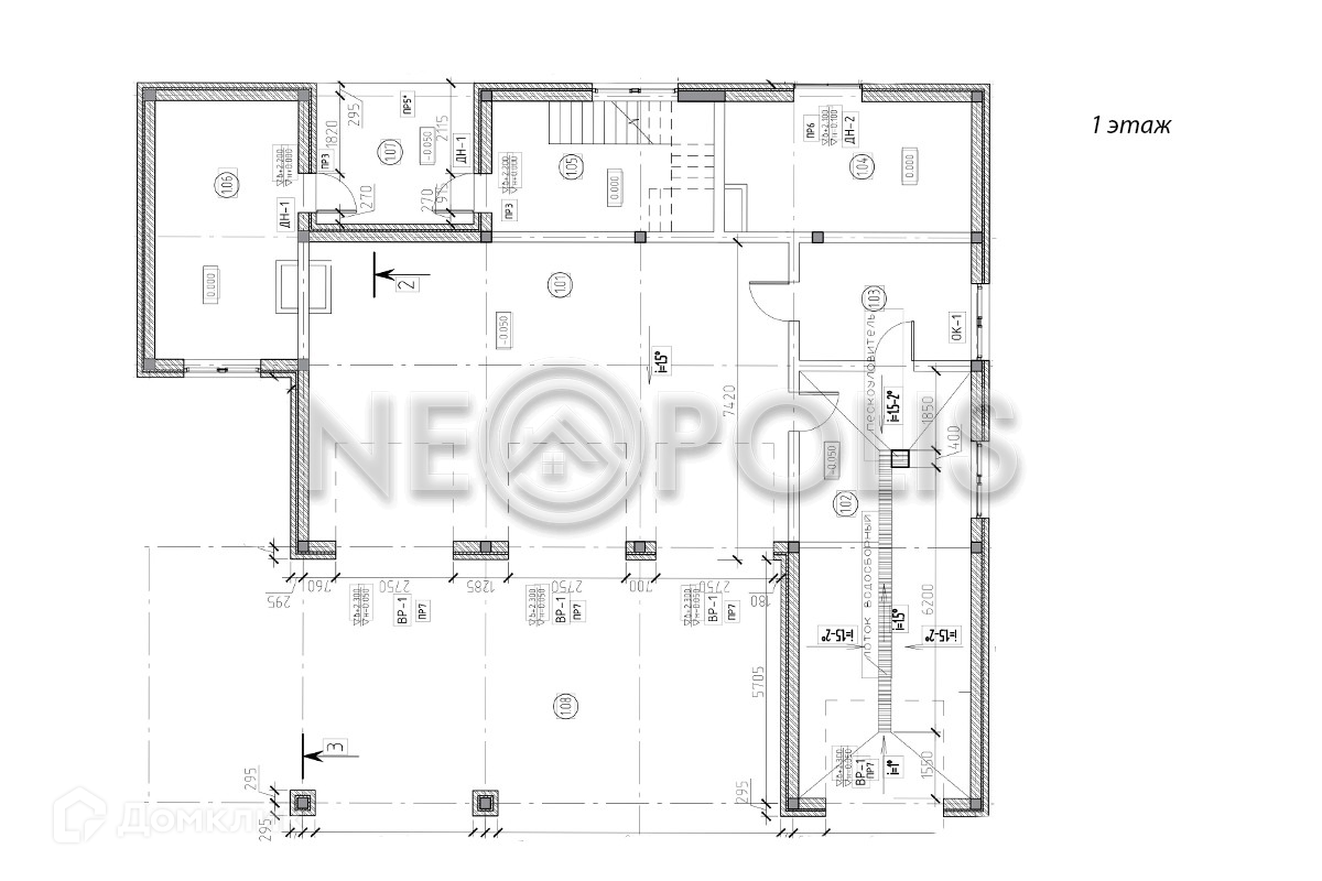 1 этаж: гараж на 3 авто, блок автомойки, машинное отделение, генераторная, котельная.