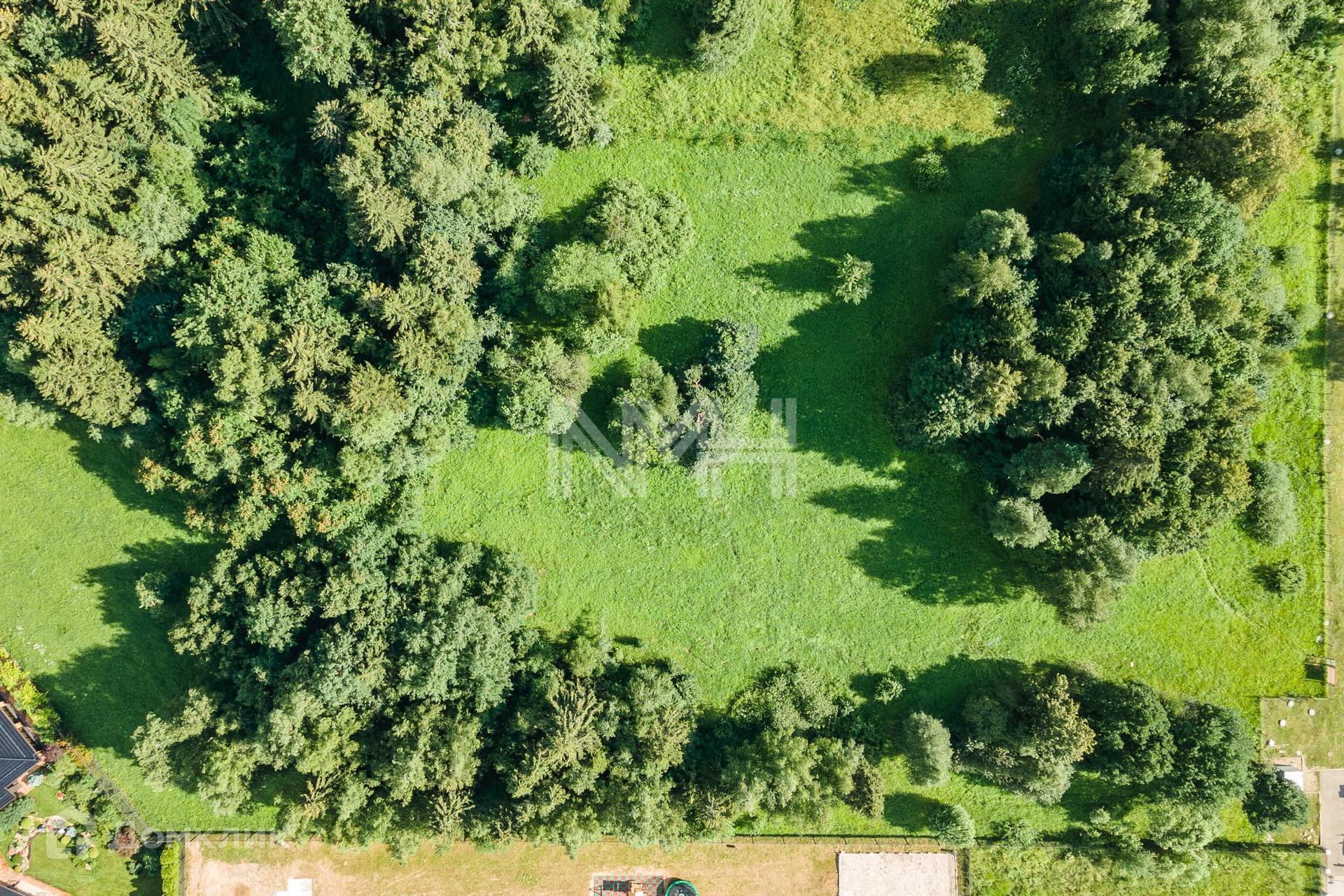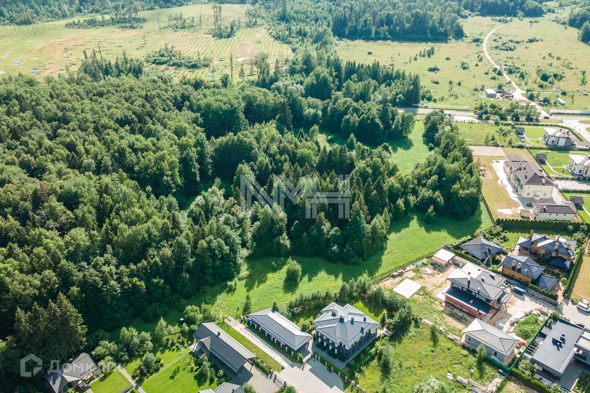 Особенности: ровный, правильной формы, выход в лес, все соседи построились, центральные коммуникации (магистральный газ по границе, вода, канализация, электричество).