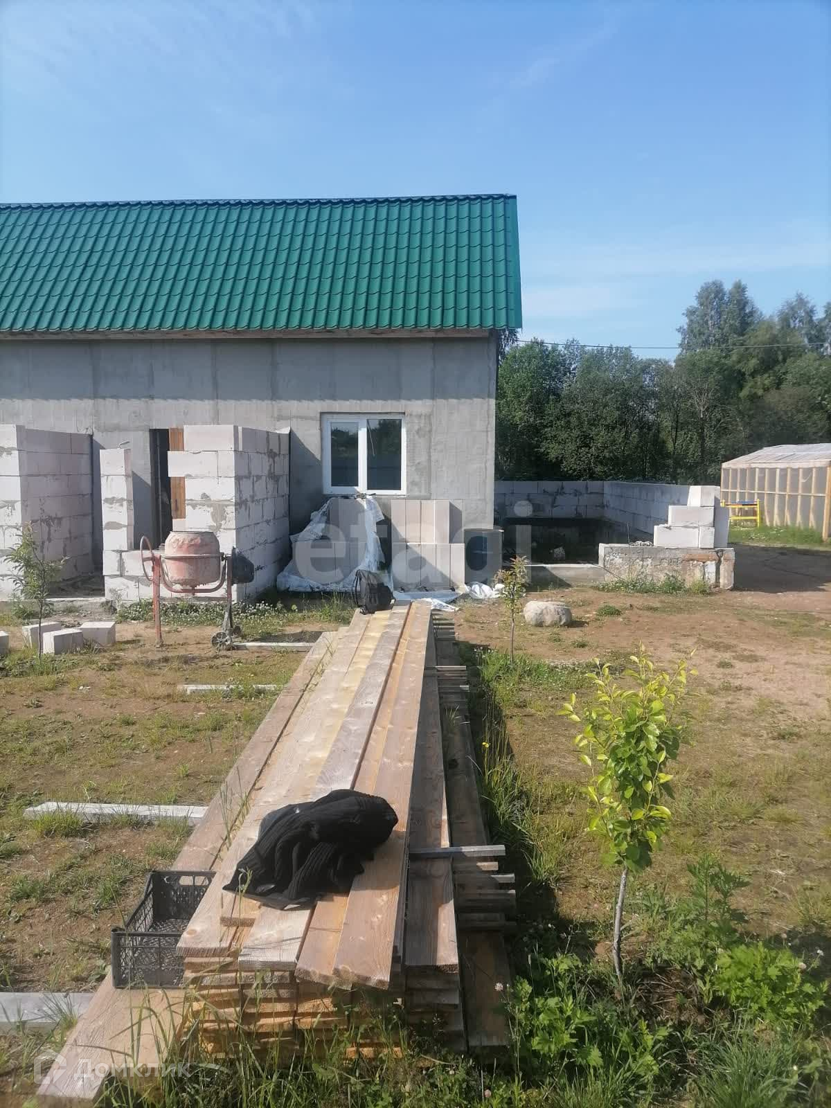 О доме- частично недостроен, пол залин, проложены трубы под теплый пол, электричество введено в дом, септик, материалы для разводки электричества и водоснабжения куплены. Газ в деревне планируется в 2024 году.