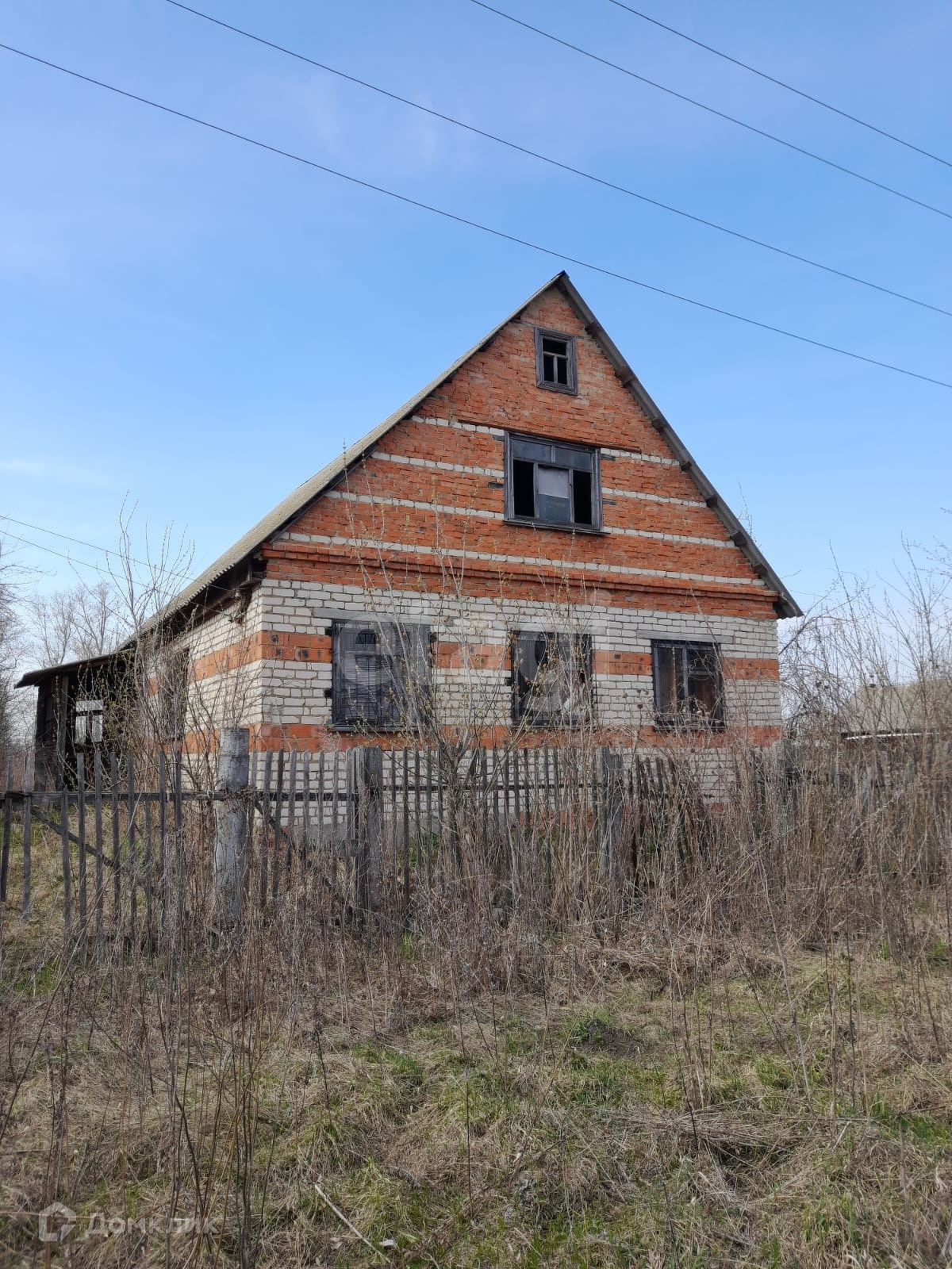 Дом заброшенный, но добротный. Стены - кирпич. Крыша - шифер. На окнах - решётки. В собственности 25 соток земли.