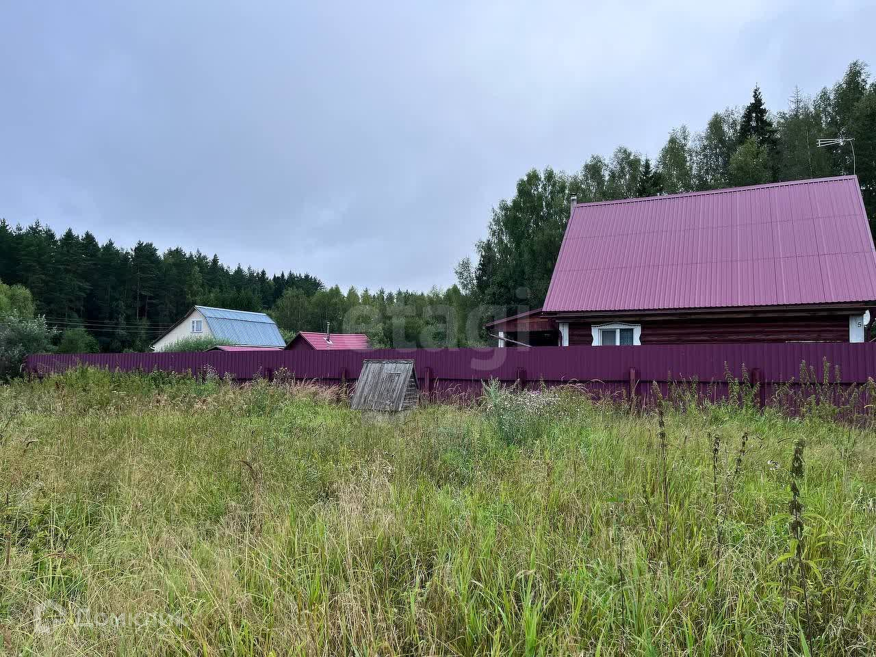 Участок окружен забором.