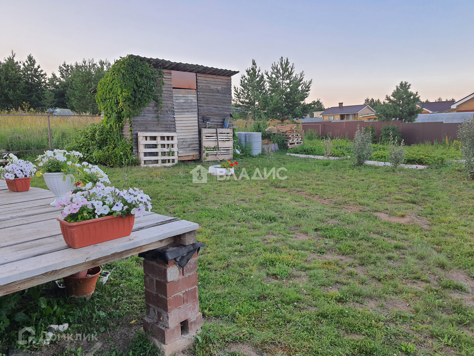 На территории участка есть плодово-ягодные деревья и другие посадки.