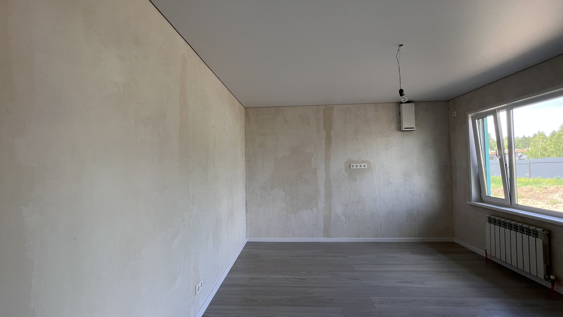 Дом в чистовой отделке, можно заехать и сразу жить. Будут оштукатурены стены под финальное покрытие, теплые полы во всем доме, ламинат в комнатах, в котельной– керамогранит на полу, в ванной керамогранит на стенах и полу, во всех помещениях натяжной белый потолок и установлены точечные светильники, розетки и выключатели.