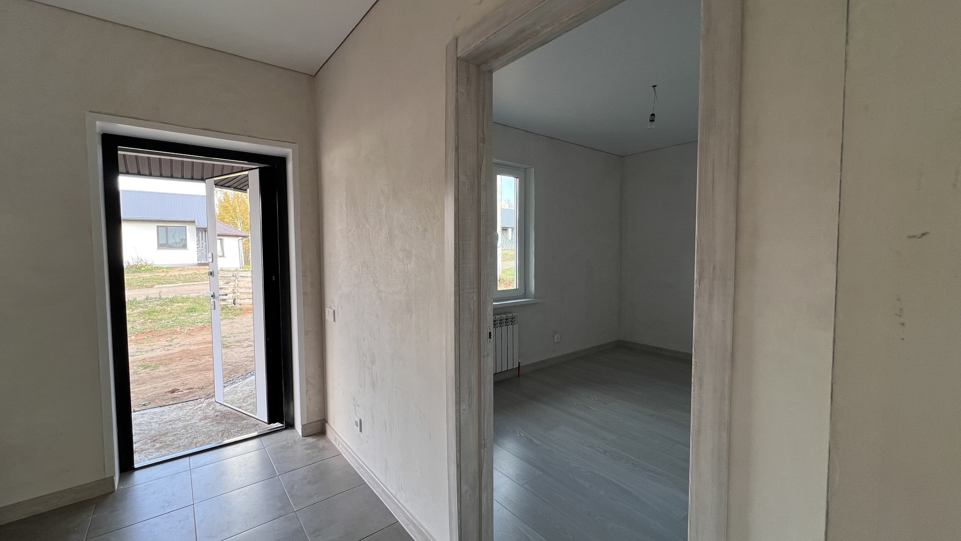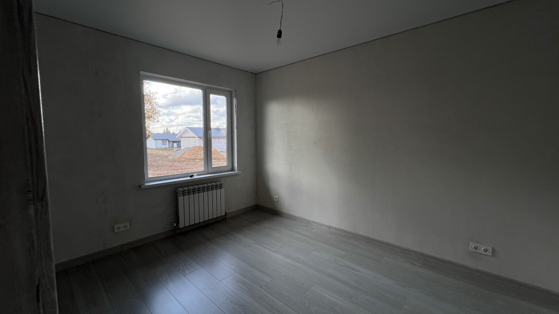 В предчистовой отделке: отштукатурены стены, стяжка с теплыми полами, отделка оконных проемов, радиаторы и разводка всей электрики.
