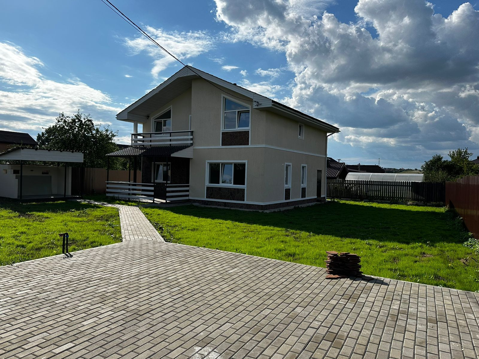 Добрый день, продается дом постройки 2022-2023 годов, в тихой деревне Камкино площадью 185 м2, в 15 км от МКАД по каширскому шоссе (в аэропорт) на 7,5 сотках (ИЖС), дом и участок оформлен, стоят на кадастровом учете, адреса присвоены, полный комплект документов, свой заезд гостевая парковка, шикарнейший вид из окна, в доме 5 спален, детская, большая гостиная, два санузла, сауна, гардеробная, бойлерная, дом полностью под ключ, внешняя и внутренняя отделка выполнена из качественных материалов, окна rehau grazio 70-й 5-и камерный профиль с энергосбережением, межкомнатные двери массив ольхи в полной комплектации с капителями, сантехника Grohe, ламинат 33 класс 14 мм, кровля металлочерепица, цоколь и часть фасада натуральный камень, стены газосиликатные блоки +10 см утеплитель, фундамент лента монолитная утеплена в 10 см, отмостка утеплена 5 см, пол утеплен тремя видами утеплителя, стропила 20 см соответственно и утеплитель 20 см + пенофол фольгированный, в общем дом очень теплый, жб перекрытия, внутренние стены газосиликат (никакого гипсокартона), теплые полы по всему дому, автономная система отопления (дизель) газ рядом и подходит под президентскую программу (я исчерпал лимит льготных подключений, посодействую по подключению) бойлер комбинированный газ и электричество, при переходе на газ только заменить котел, все лампочки диодные, умный и энергоэффективный дом, артезианская скважина в бойлерной, септик топаз 8 принудительный с переливными кольцами, подведен интернет по оптоволокну, содержание дома дешевле содержания однушки в Москве, есть фото этапов строительства!!! Ворота автоматические, зона барбекю в стиль дома, хоз блок, дорожки и парковка в брусчатке, Уличное освещение на датчиках света, в зоне барбекю и на парковке подведено электричество и вода.
